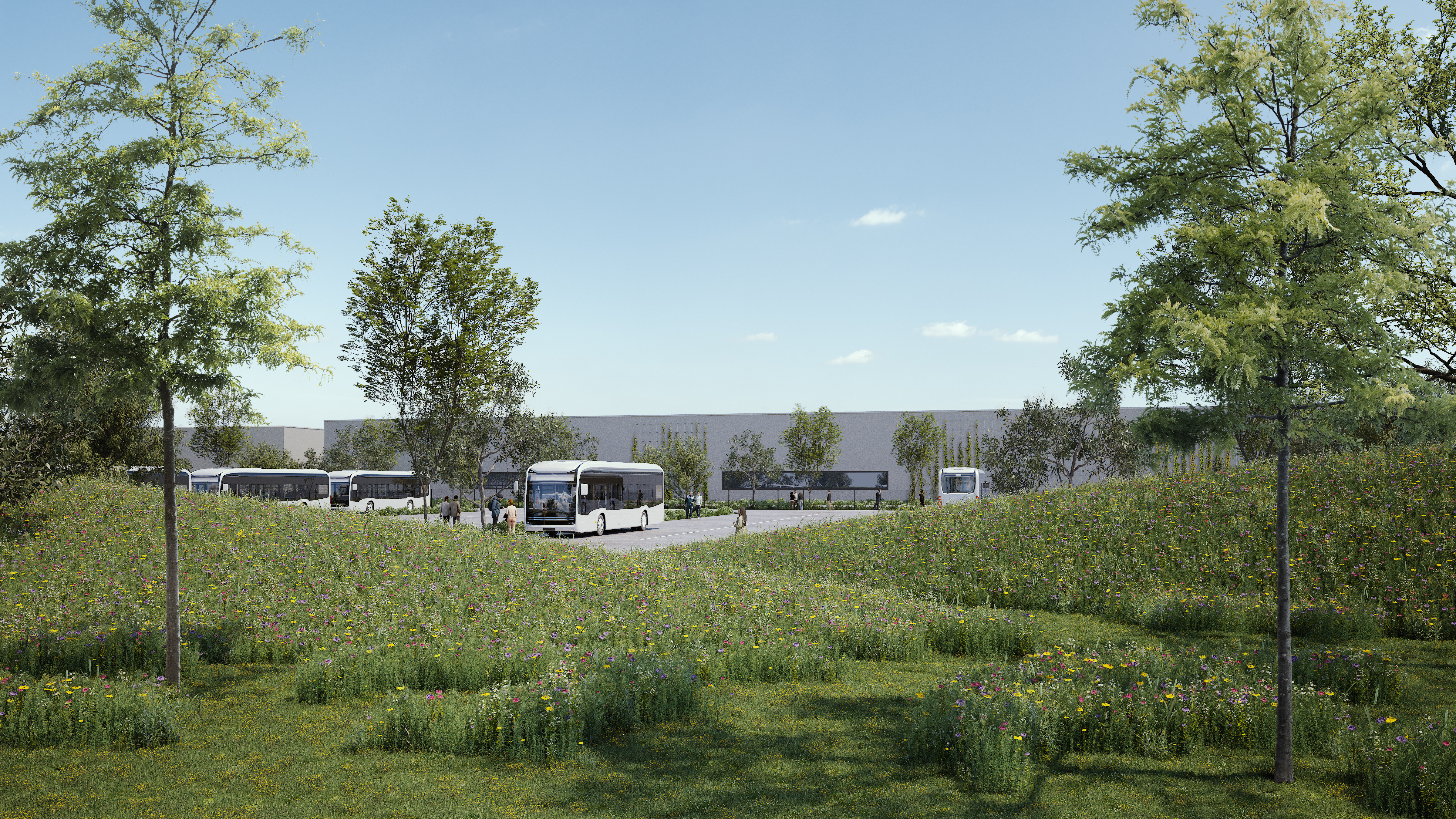 Preliminary visualisation of the bus station of the planned site for the assembly of high-voltage batteries in Straßkirchen and Irlbach, Lower Bavaria