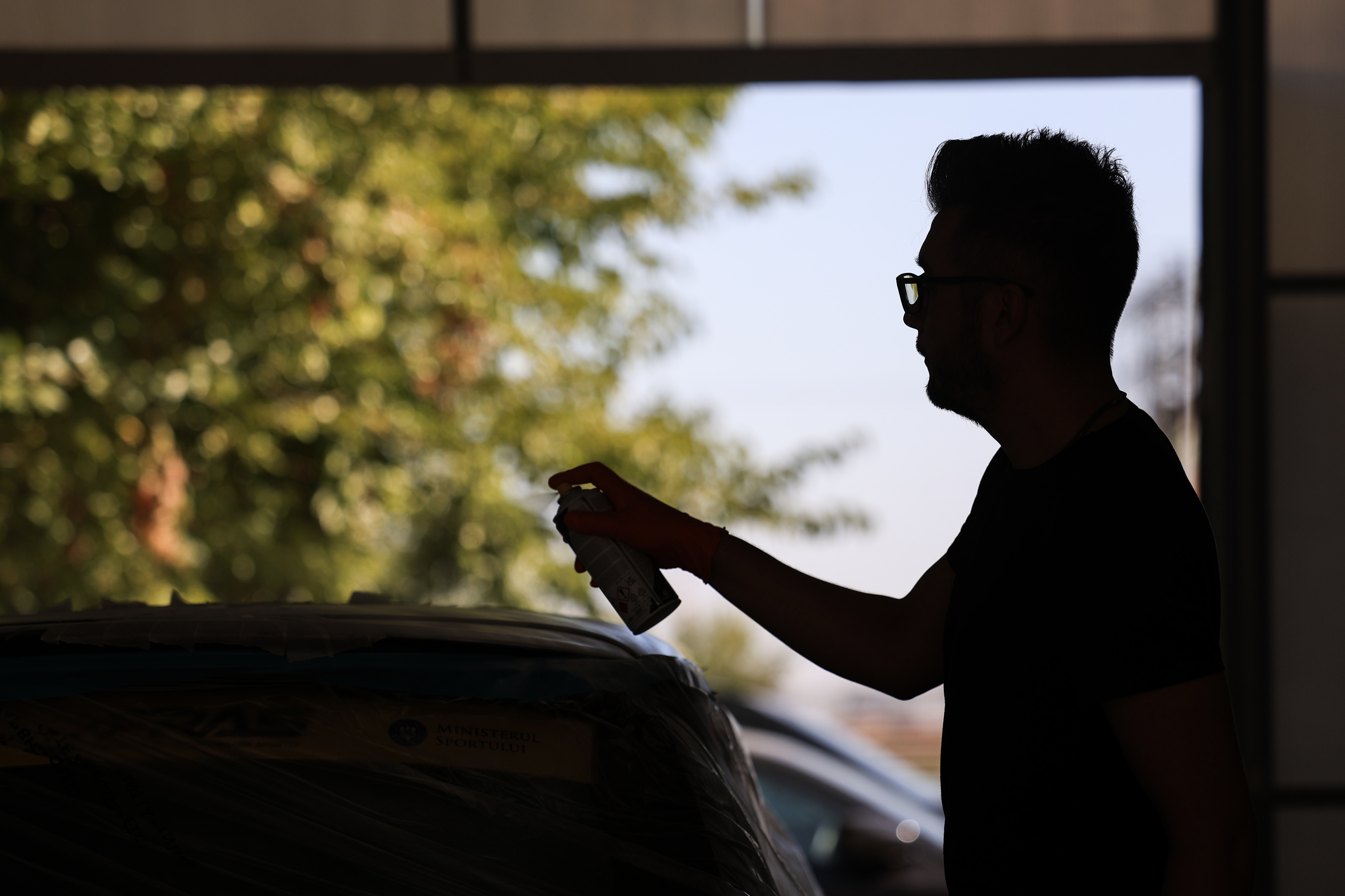 Mihai Zgondoiu paints Racing MIMI roof. Pictures by Dragos Savu. (09/2023)