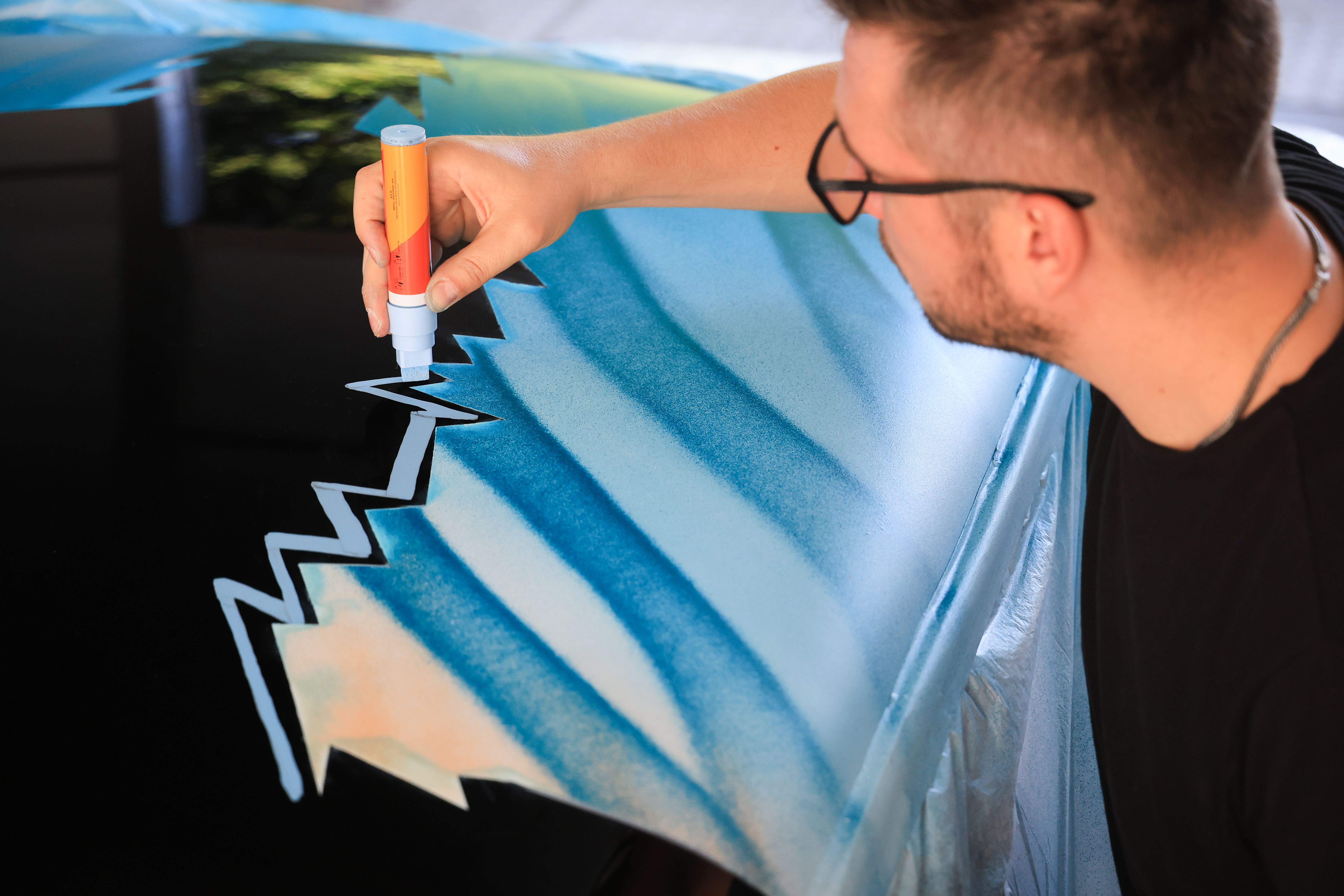 Mihai Zgondoiu paints Racing MIMI roof. Pictures by Dragos Savu. (09/2023)