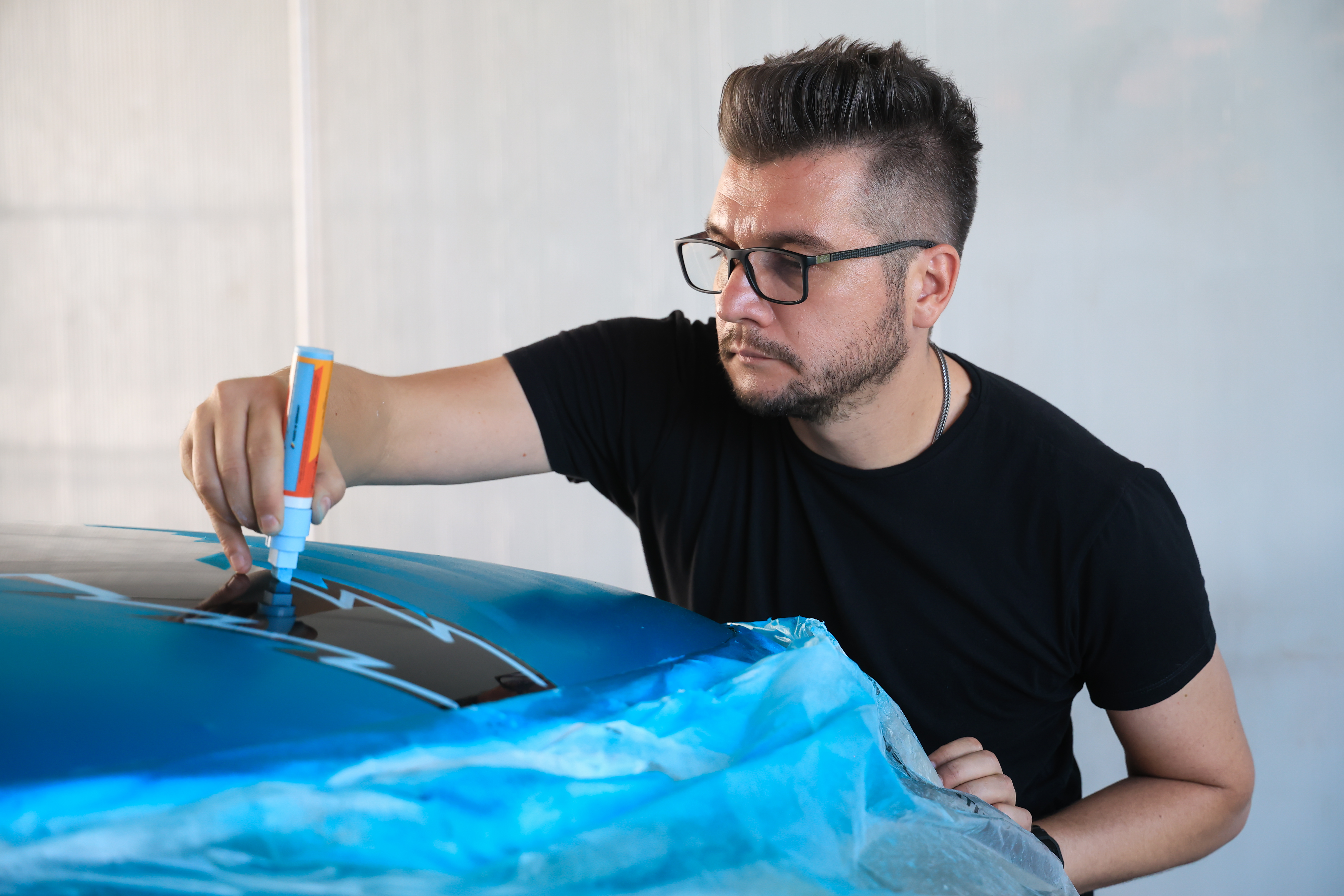 Mihai Zgondoiu paints Racing MIMI roof. Pictures by Dragos Savu. (09/2023)