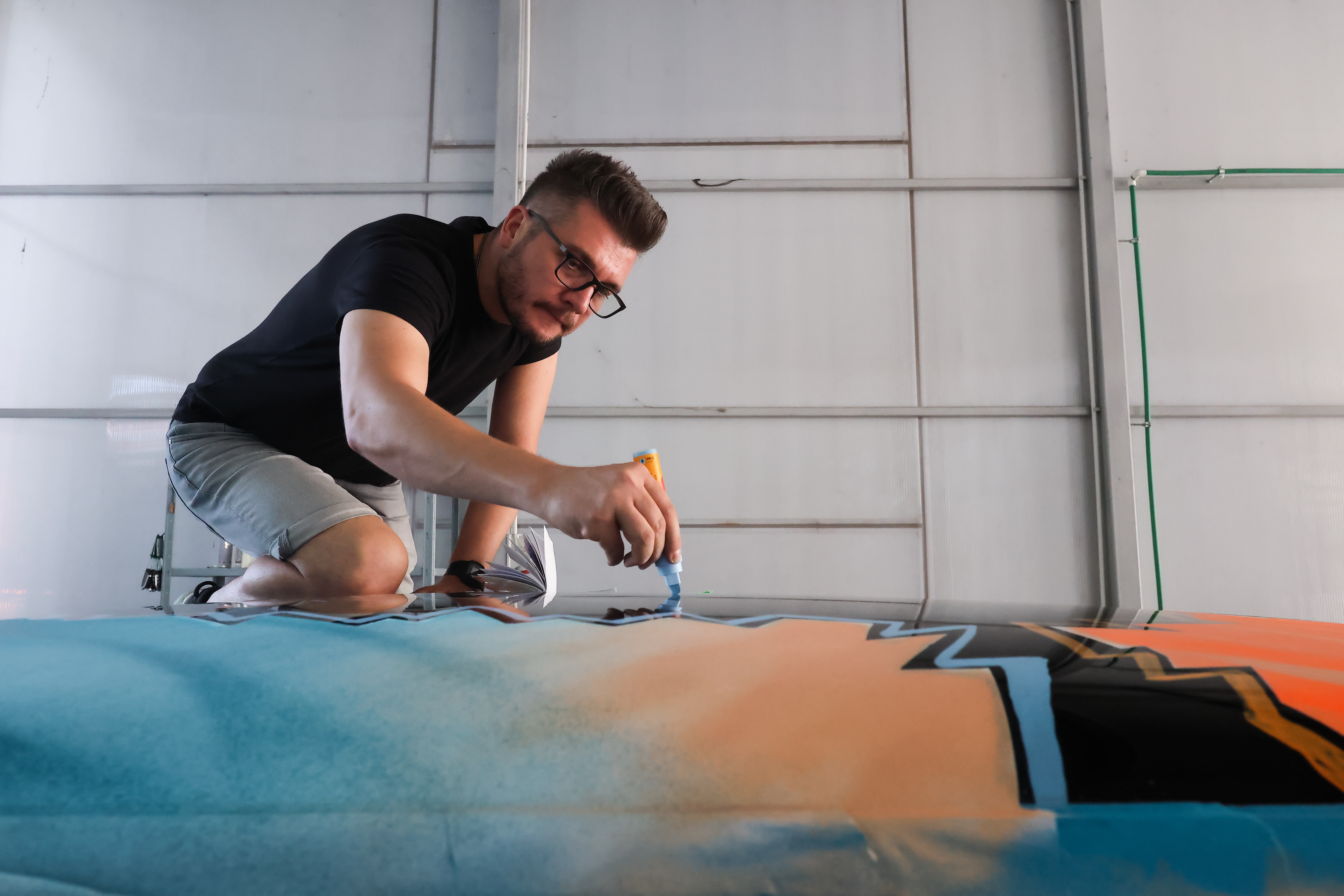 Mihai Zgondoiu paints Racing MIMI roof. Pictures by Dragos Savu. (09/2023)