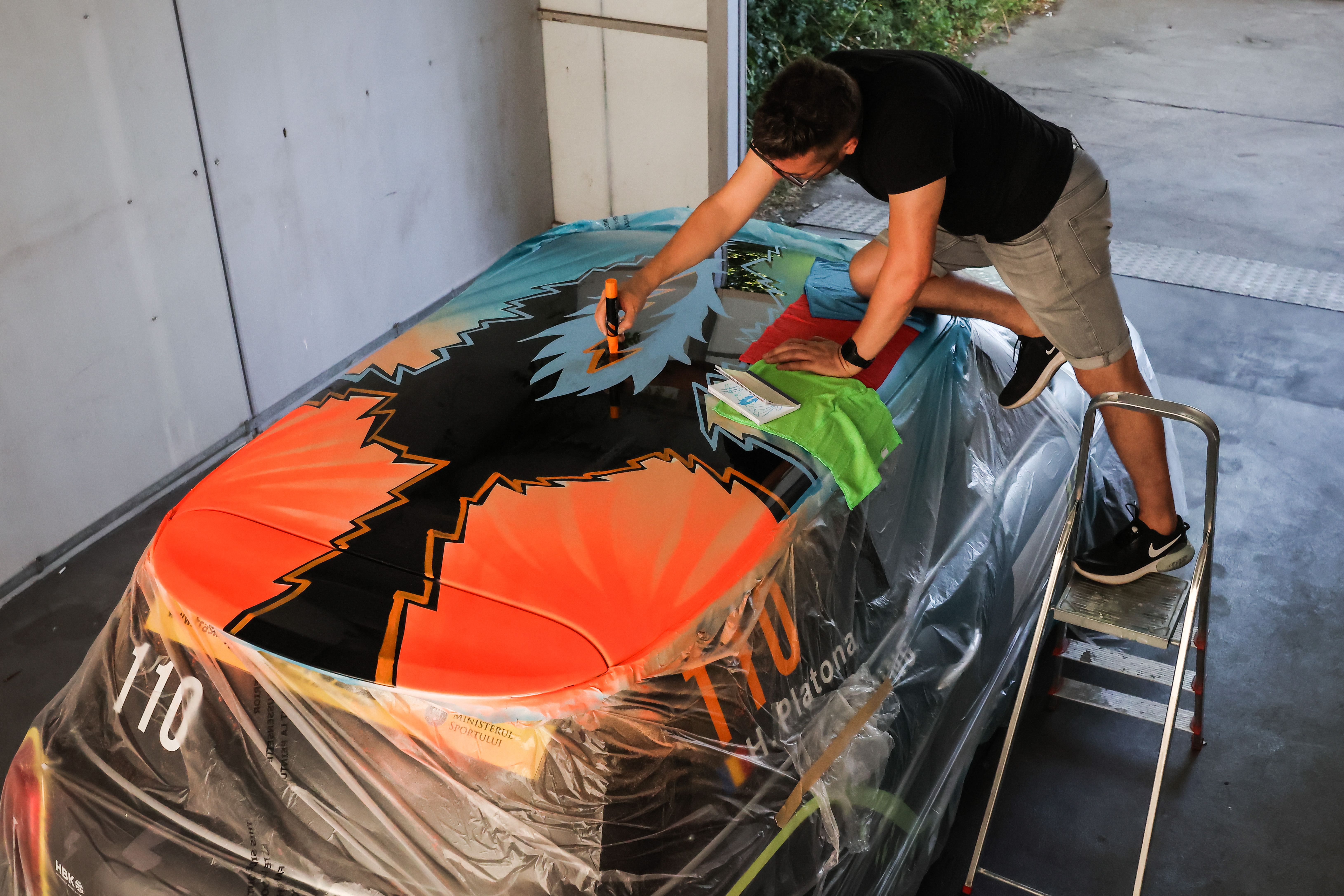 Mihai Zgondoiu paints Racing MIMI roof. Pictures by Dragos Savu. (09/2023)