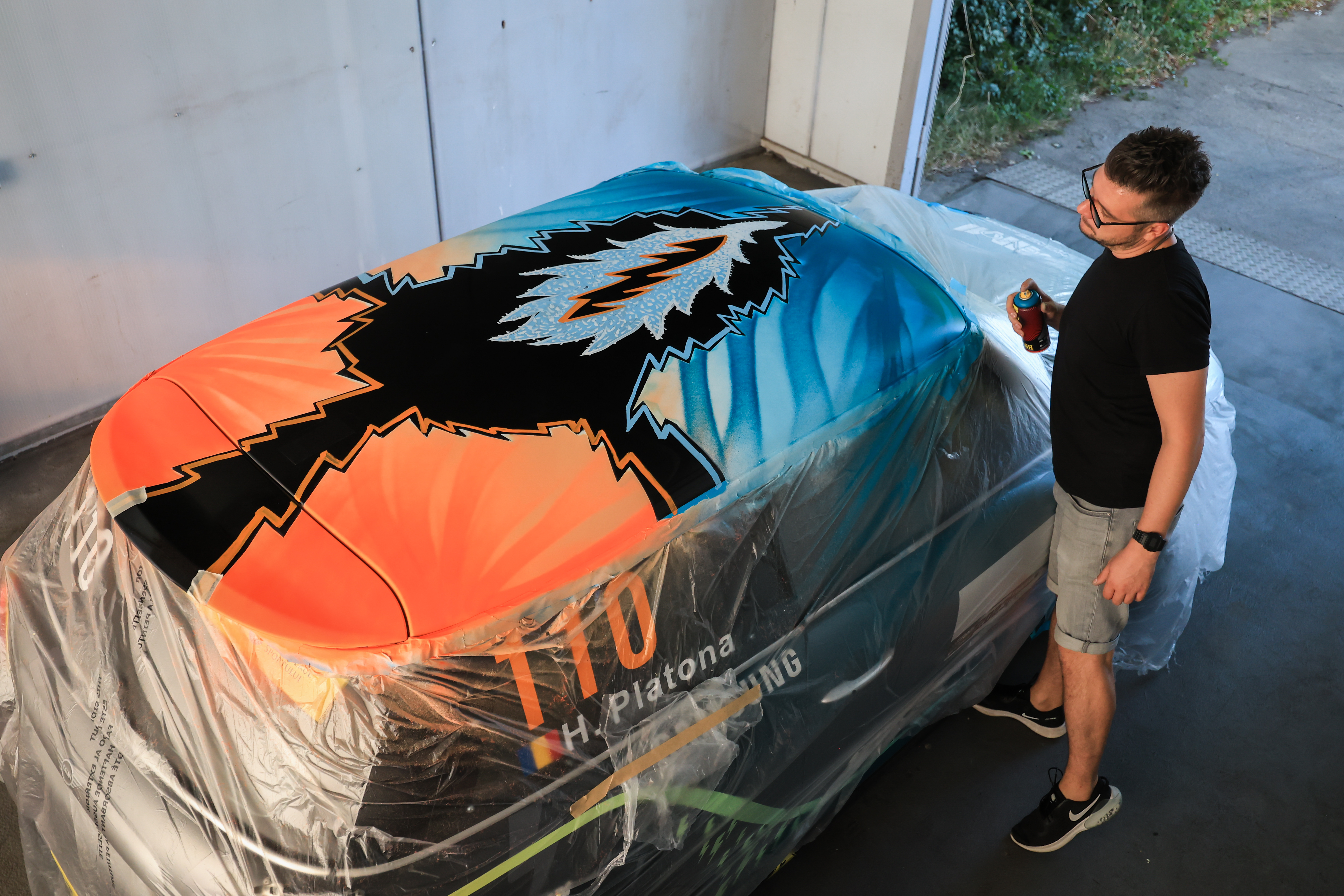 Mihai Zgondoiu paints Racing MIMI roof. Pictures by Dragos Savu. (09/2023)