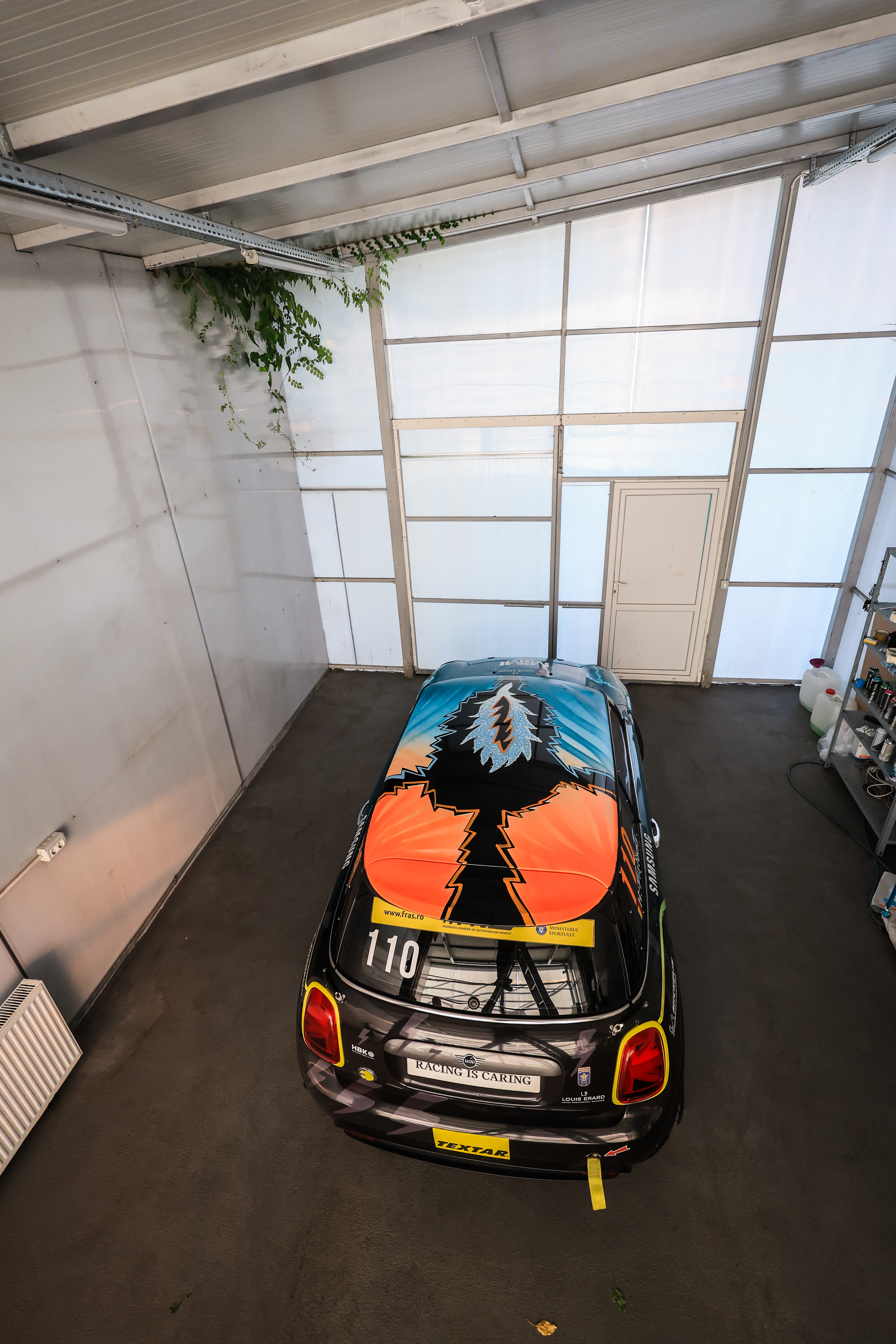 Mihai Zgondoiu paints Racing MIMI roof. Pictures by Dragos Savu. (09/2023)