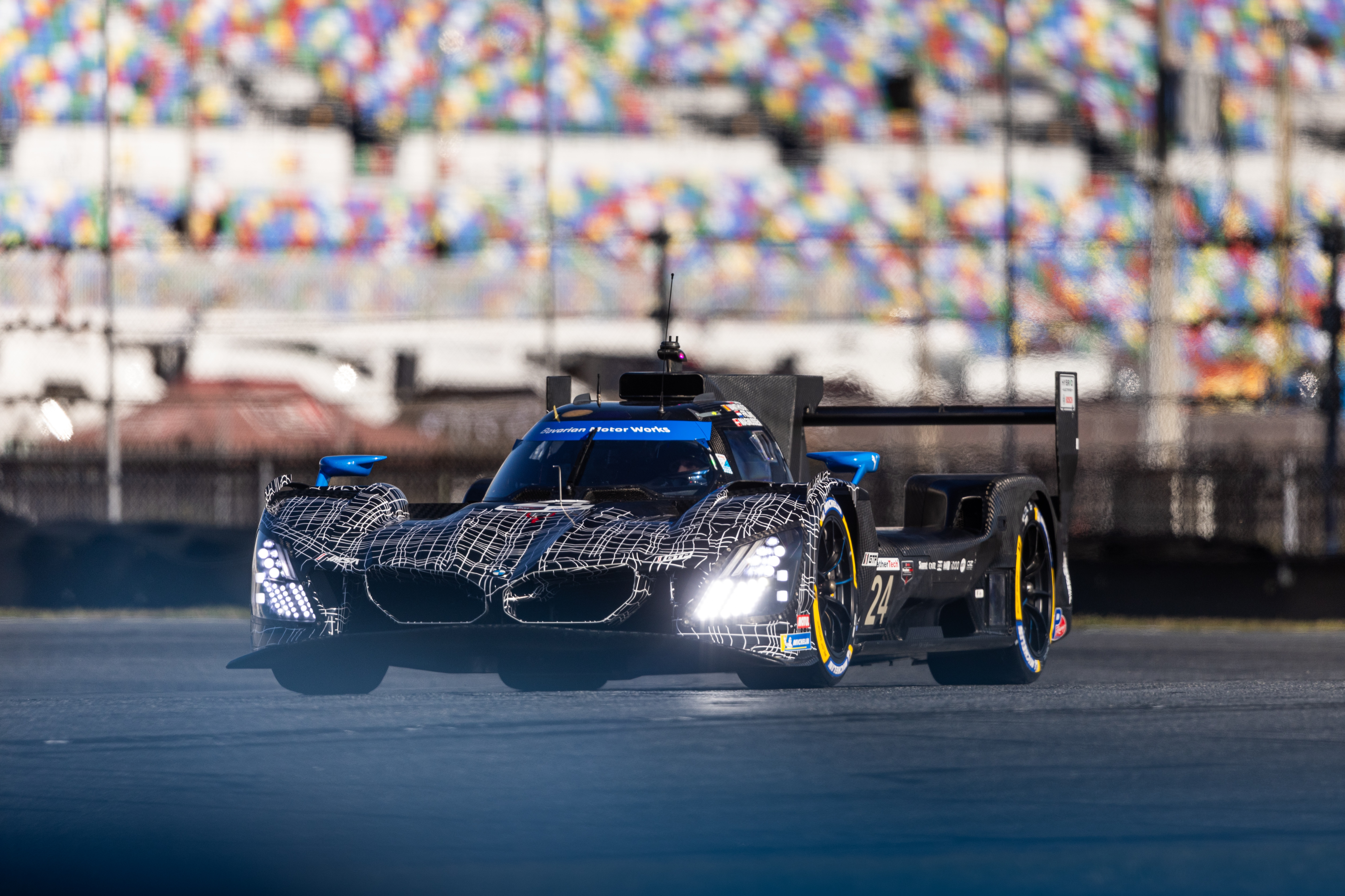 Daytona (USA), 14-16 November 2025. Daytona International Speedway, IMSA WeatherTech SportsCar Championship, Sanctioned Test, BMW M Hybrid V8, Hypercar, LMDh, GTP, BMW M Team WRT, Yellow Lights.
