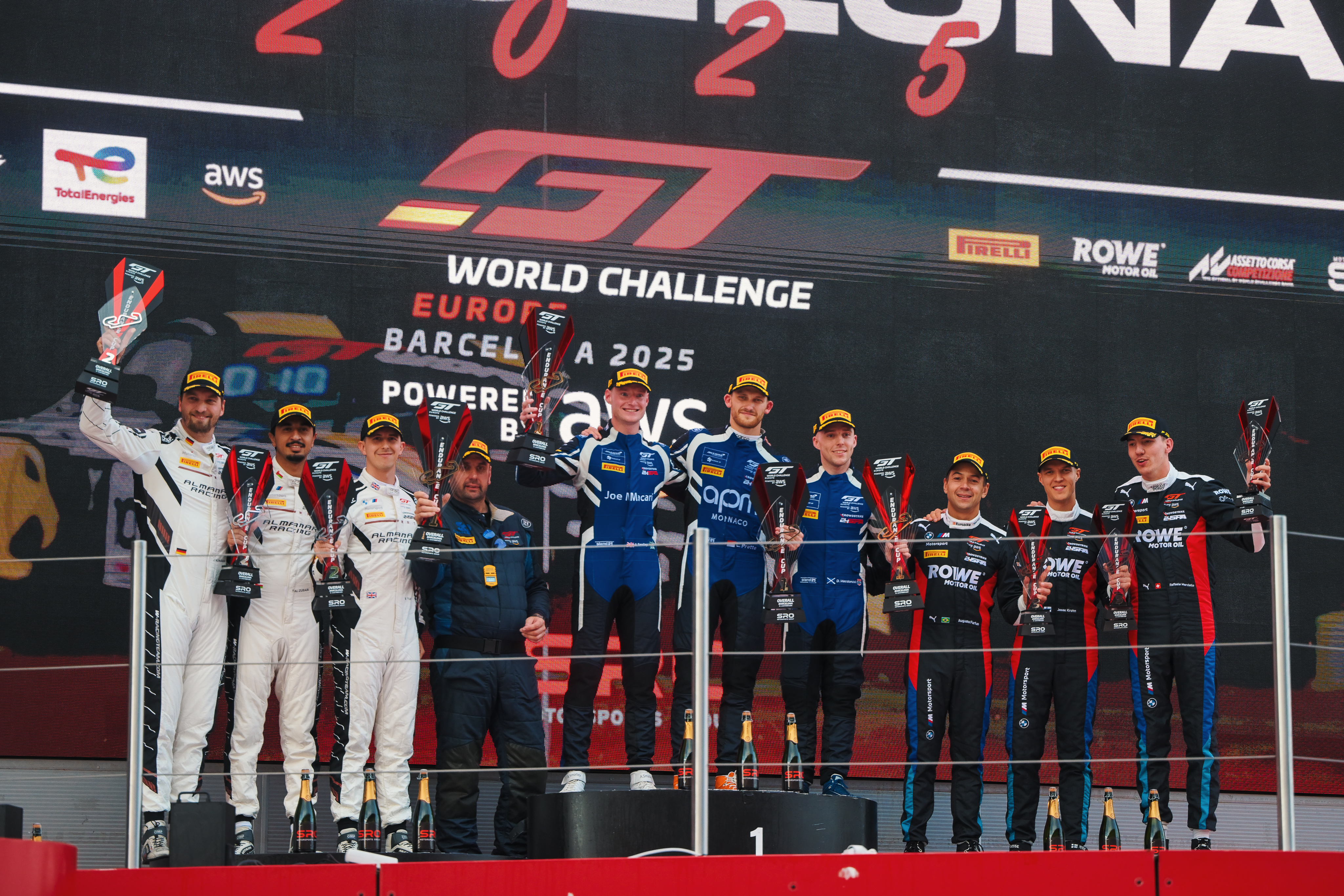 Barcelona (ESP), 9-12 October 2025. GT World Challenge Europe powered by AWS, SRO, Endurance Cup, GTWC, ROWE Racing, Augusto Farfus, Jesse Krohn, Raffaele Marciello, AlManar Racing by WRT, Jens Klingmann, Ben Tuck, Al Faisal Al Zubair.
