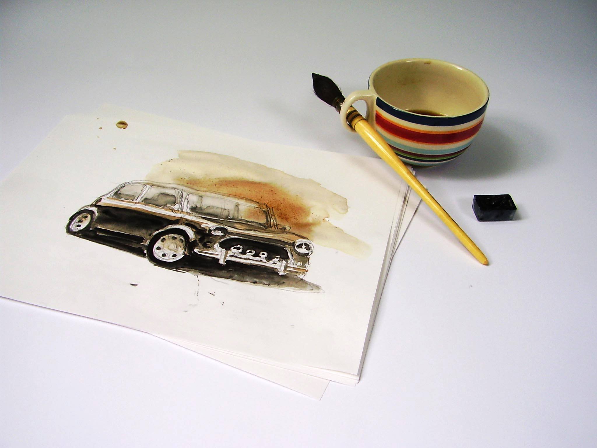 “Mini” by Adrian Mitu, watercolor with coffee. (05/2021)