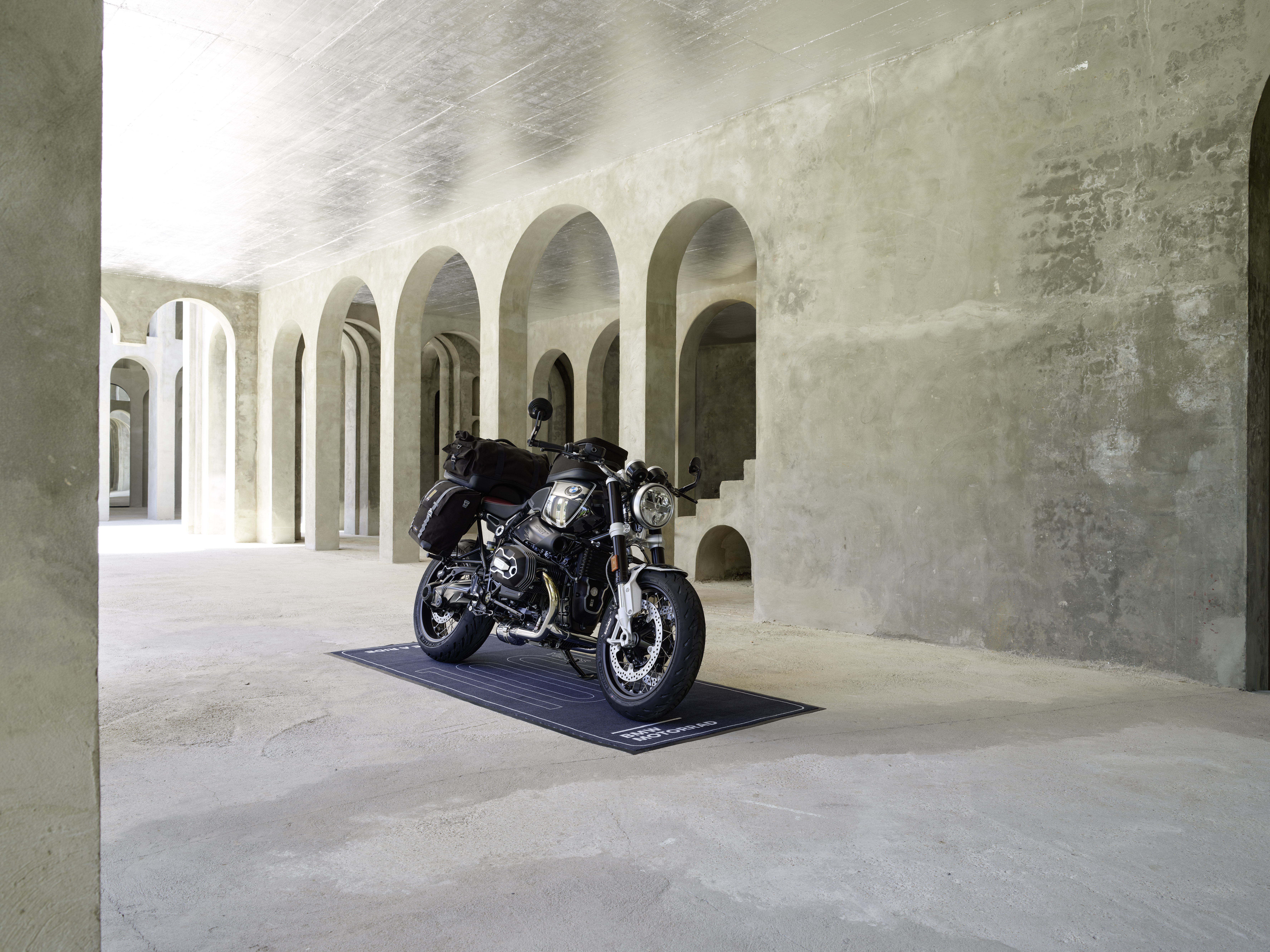 BMW R nineT 100 Years. Original BMW Motorrad Accessories: Tank bag Edition 100 Years, Side bag Edition 100 Years, left, Side bag Edition 100 Years, right, Rear bag Edition 100 Years and Motorcycle mat Edition 100 Years. (12/2022)