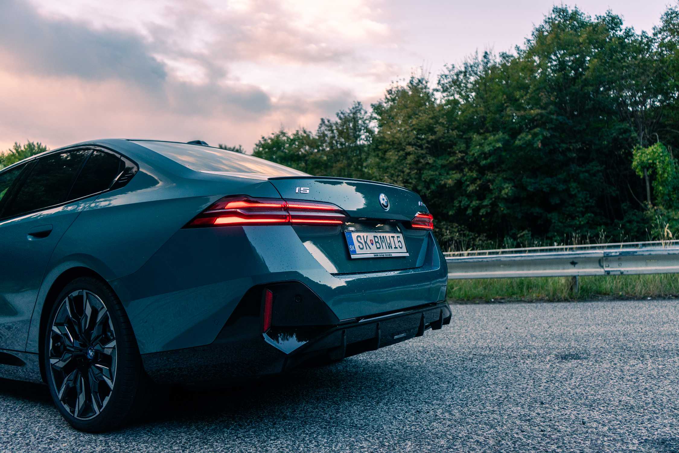 New BMW i5 M60 xDrive – Cape York Green Metallic/ BMW Individual 'Merino' Silverstone II/Atlas Grey – Location in Bratislava, Slovakia (12/2023)