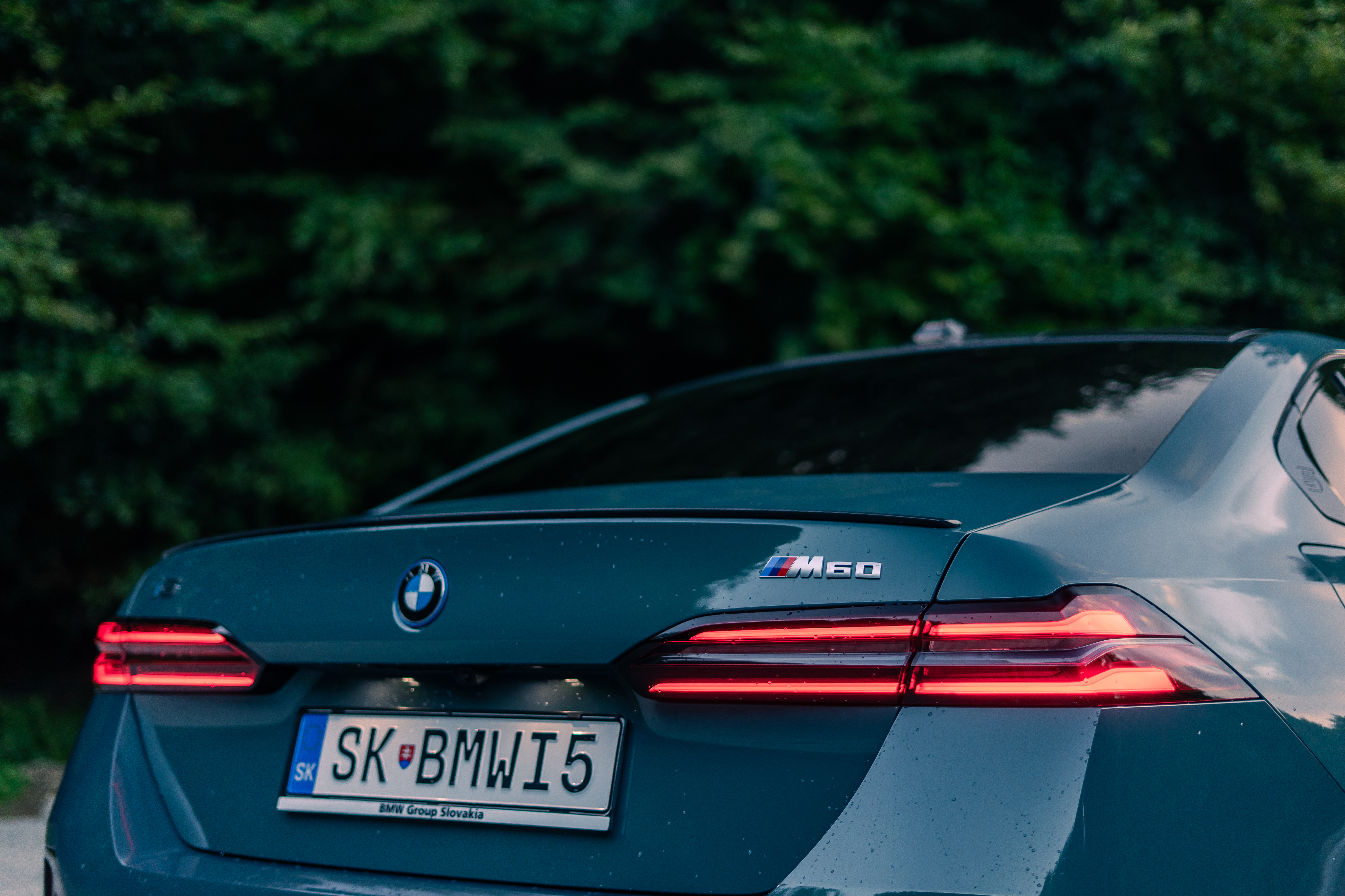 New BMW i5 M60 xDrive – Cape York Green Metallic/ BMW Individual 'Merino' Silverstone II/Atlas Grey – Location in Bratislava, Slovakia (12/2023)