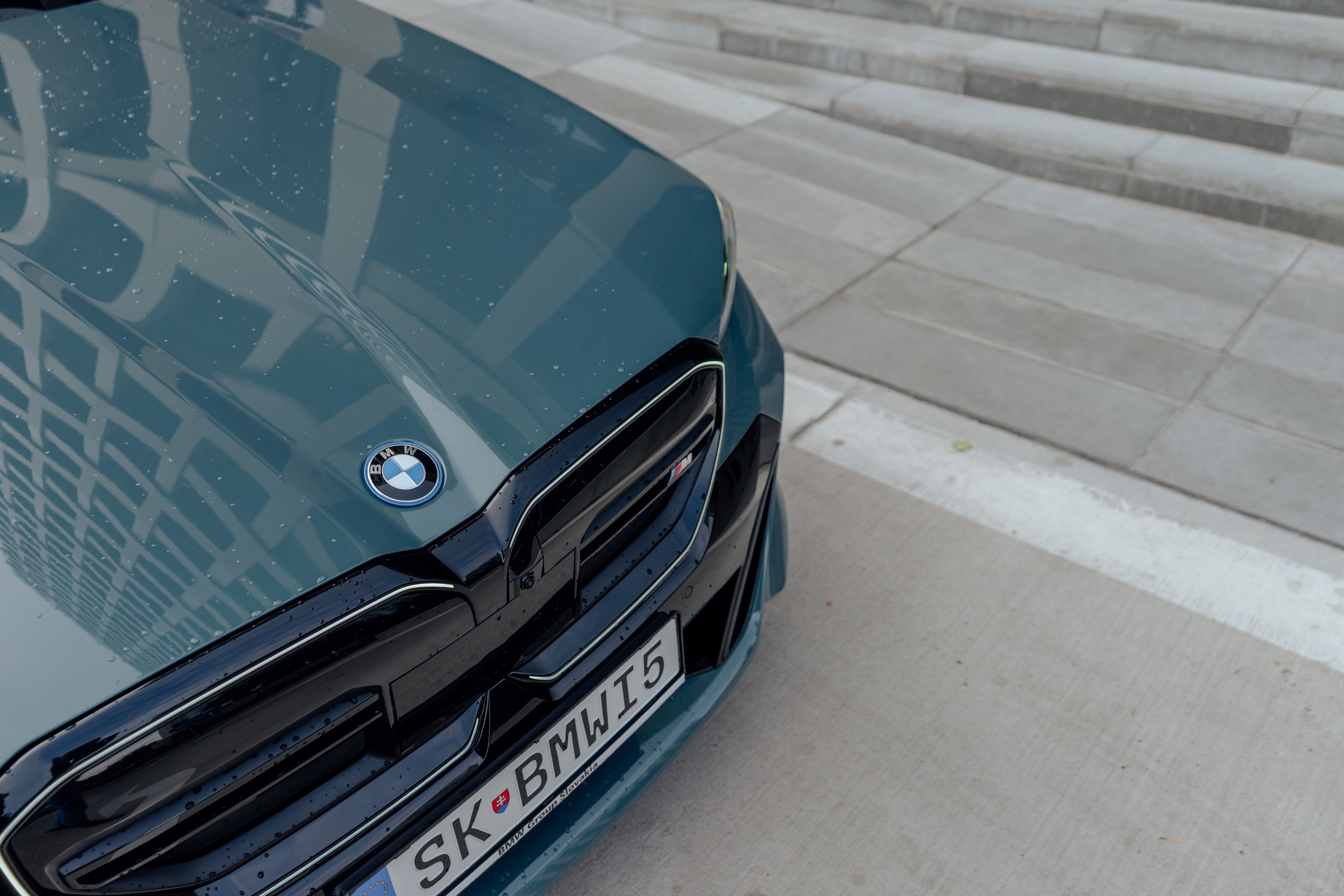 New BMW i5 M60 xDrive – Cape York Green Metallic/ BMW Individual 'Merino' Silverstone II/Atlas Grey – Location in Bratislava, Slovakia (12/2023)
