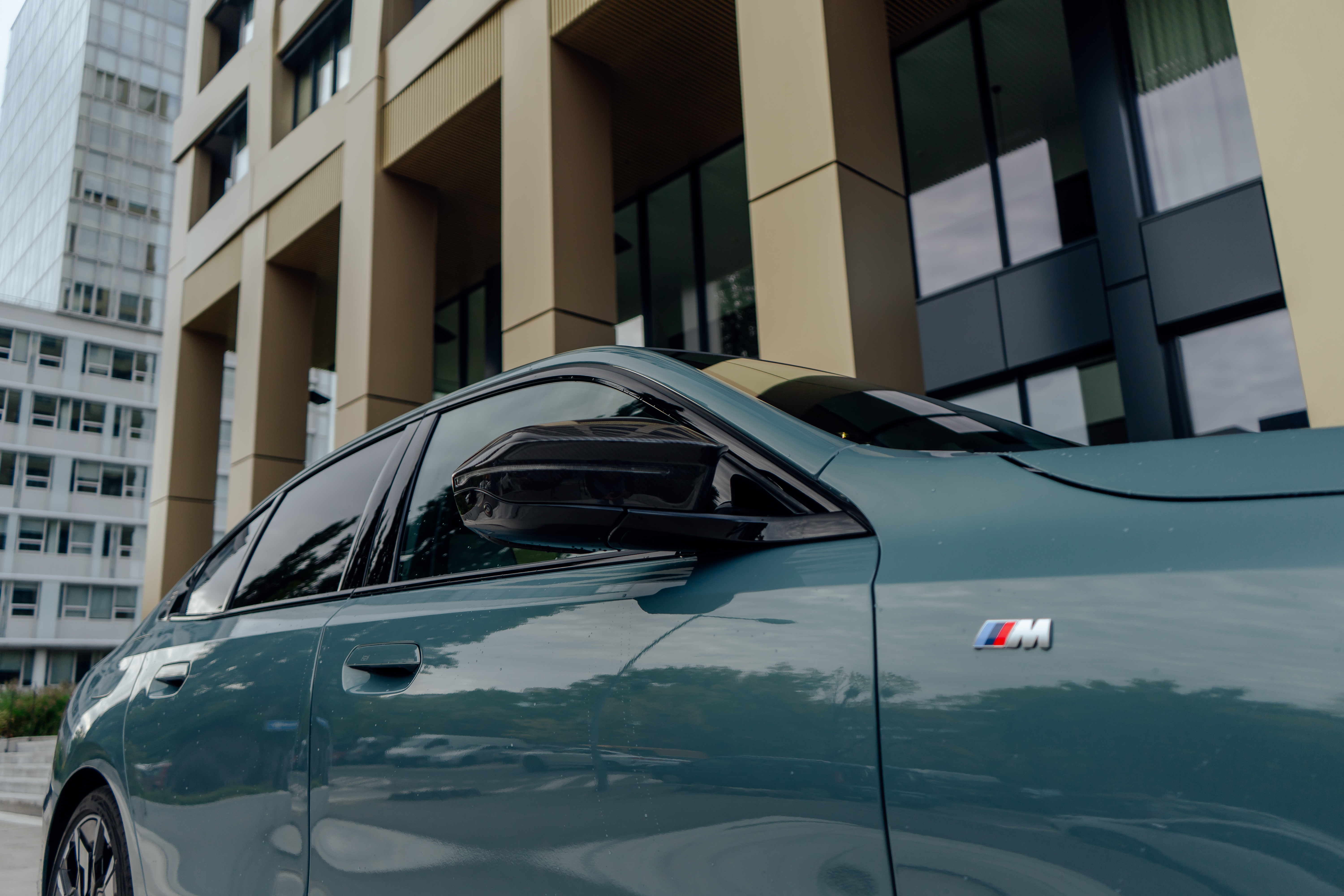 New BMW i5 M60 xDrive – Cape York Green Metallic/ BMW Individual 'Merino' Silverstone II/Atlas Grey – Location in Bratislava, Slovakia (12/2023)
