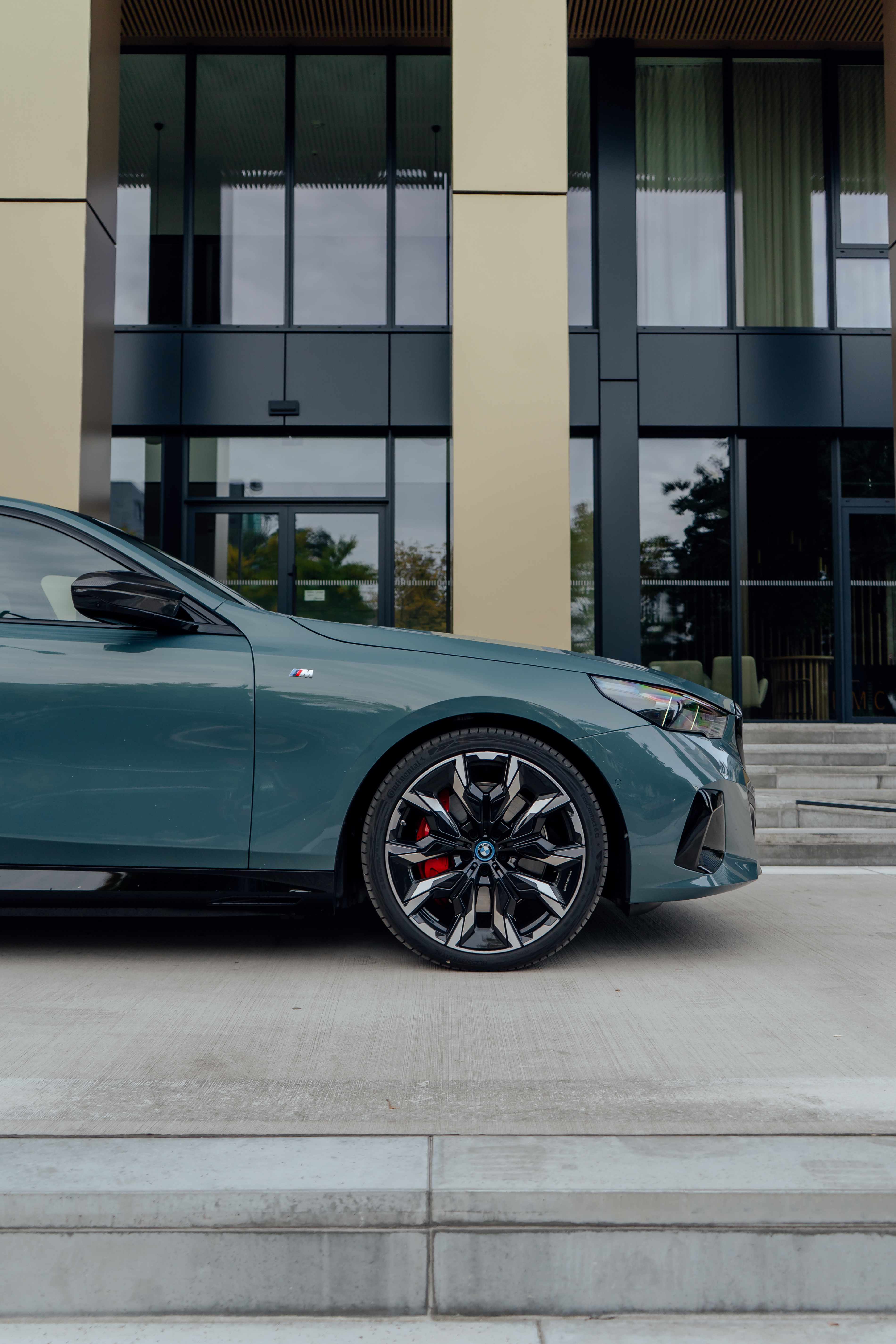New BMW i5 M60 xDrive – Cape York Green Metallic/ BMW Individual 'Merino' Silverstone II/Atlas Grey – Location in Bratislava, Slovakia (12/2023)