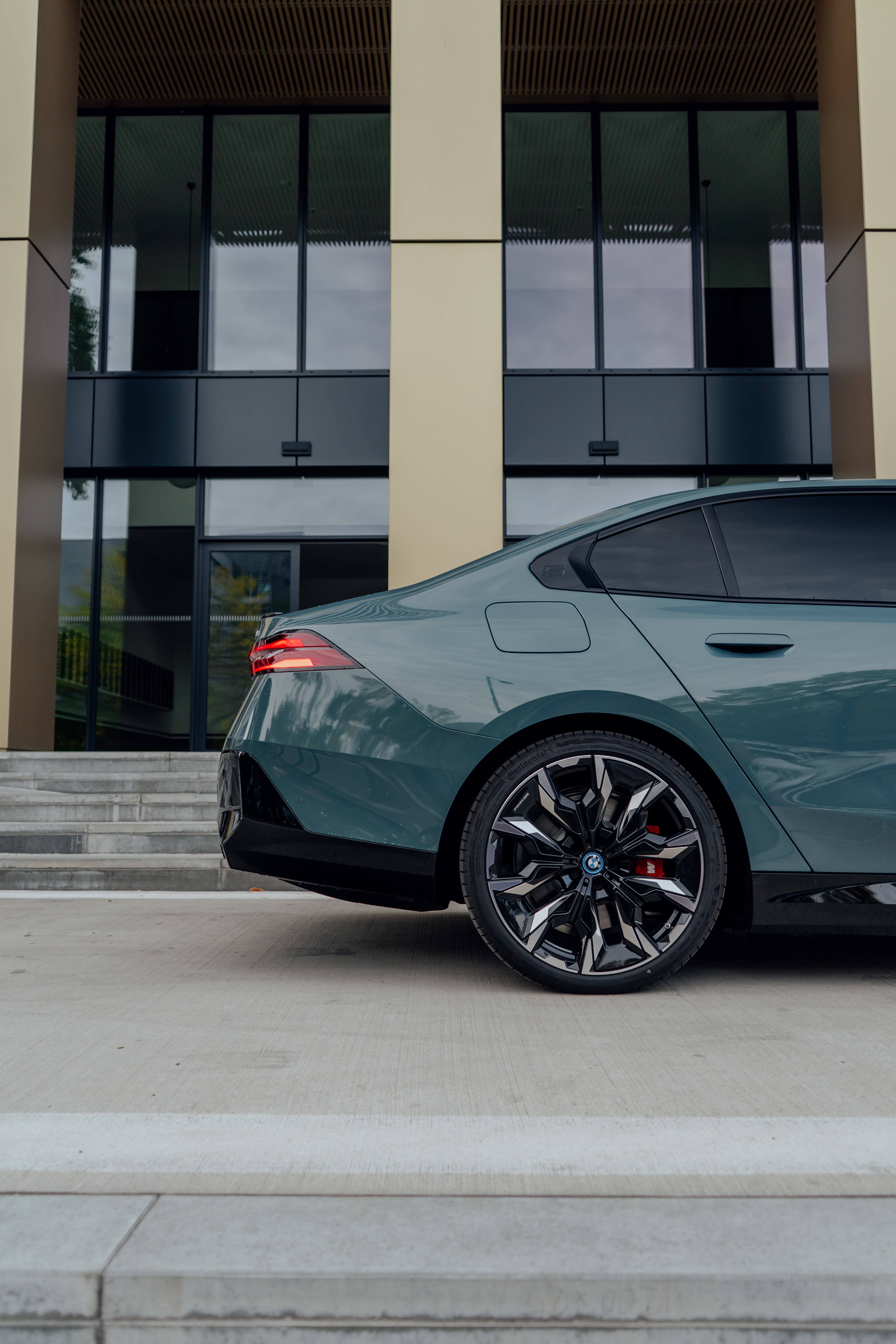 New BMW i5 M60 xDrive – Cape York Green Metallic/ BMW Individual 'Merino' Silverstone II/Atlas Grey – Location in Bratislava, Slovakia (12/2023)