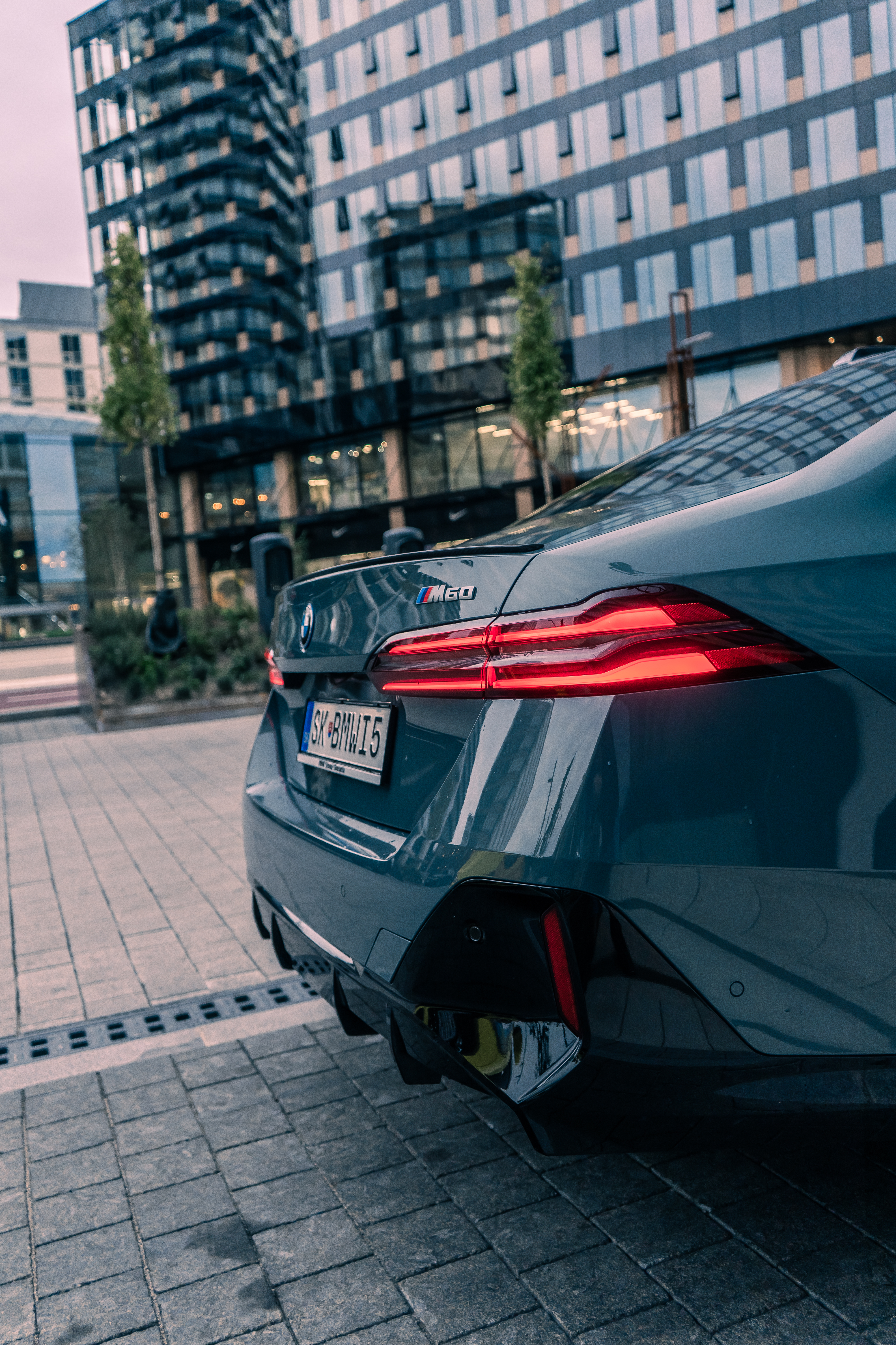 New BMW i5 M60 xDrive – Cape York Green Metallic/ BMW Individual 'Merino' Silverstone II/Atlas Grey – Location in Bratislava, Slovakia (12/2023)