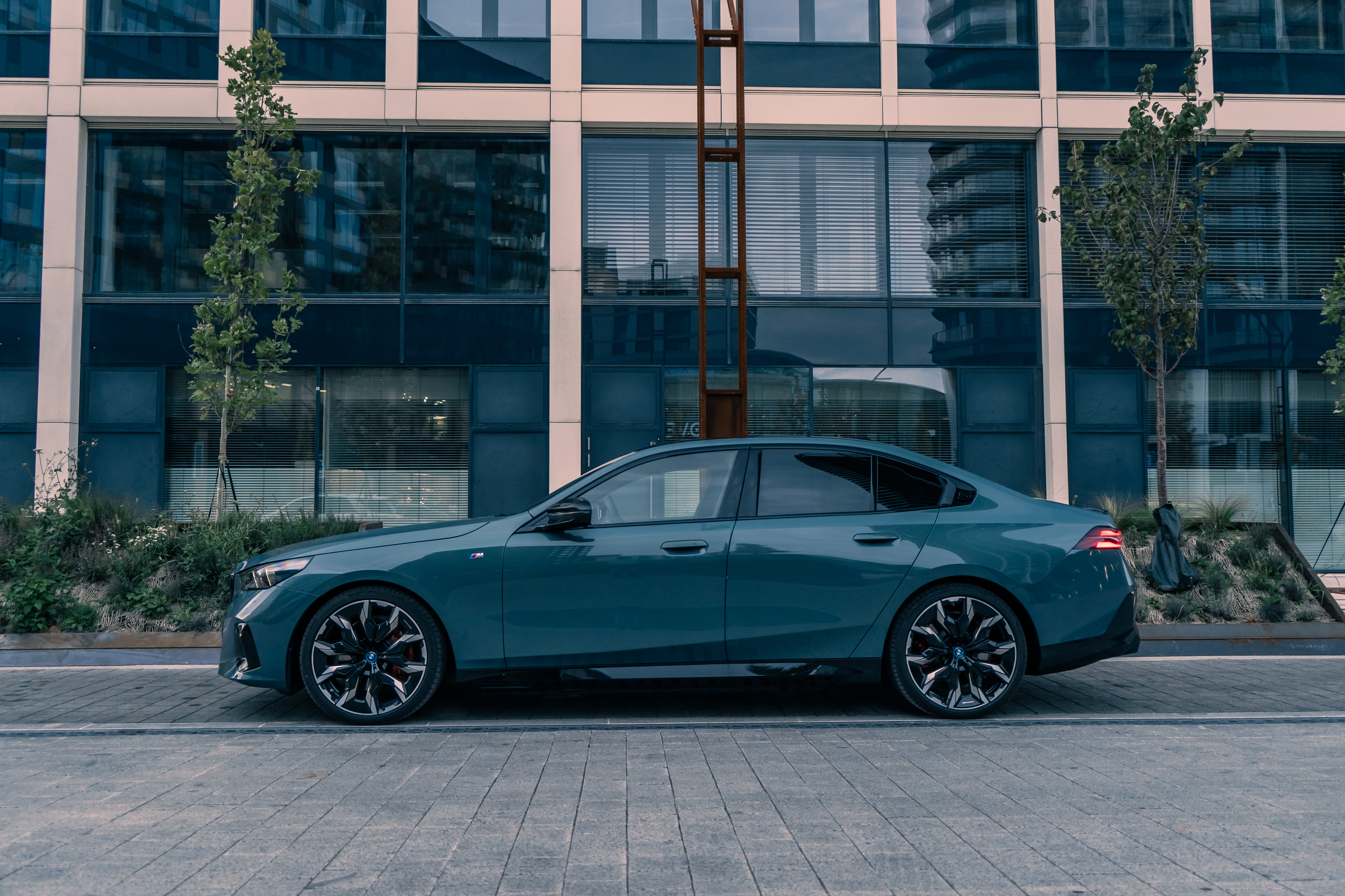 New BMW i5 M60 xDrive – Cape York Green Metallic/ BMW Individual 'Merino' Silverstone II/Atlas Grey – Location in Bratislava, Slovakia (12/2023)