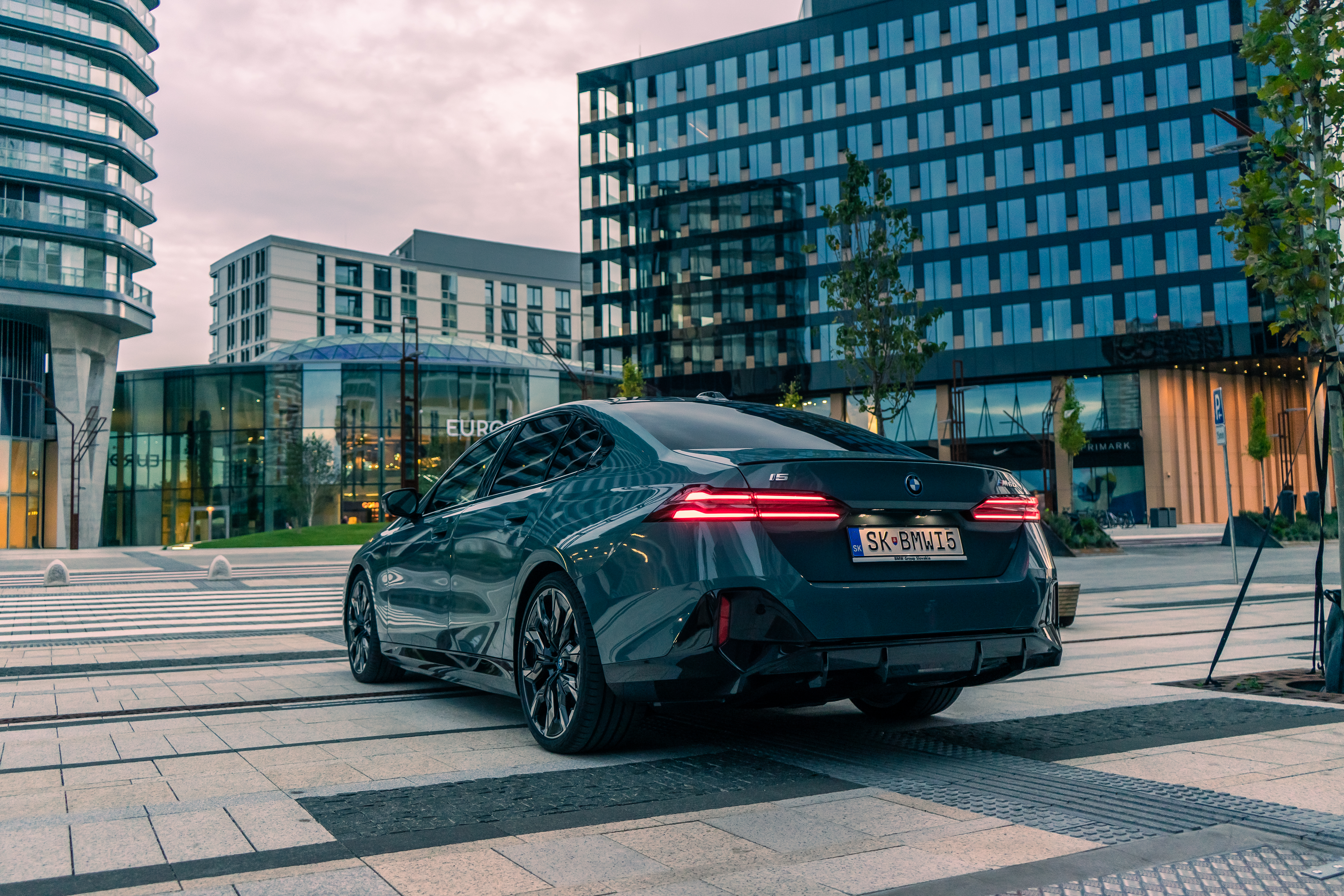 New BMW i5 M60 xDrive – Cape York Green Metallic/ BMW Individual 'Merino' Silverstone II/Atlas Grey – Location in Bratislava, Slovakia (12/2023)