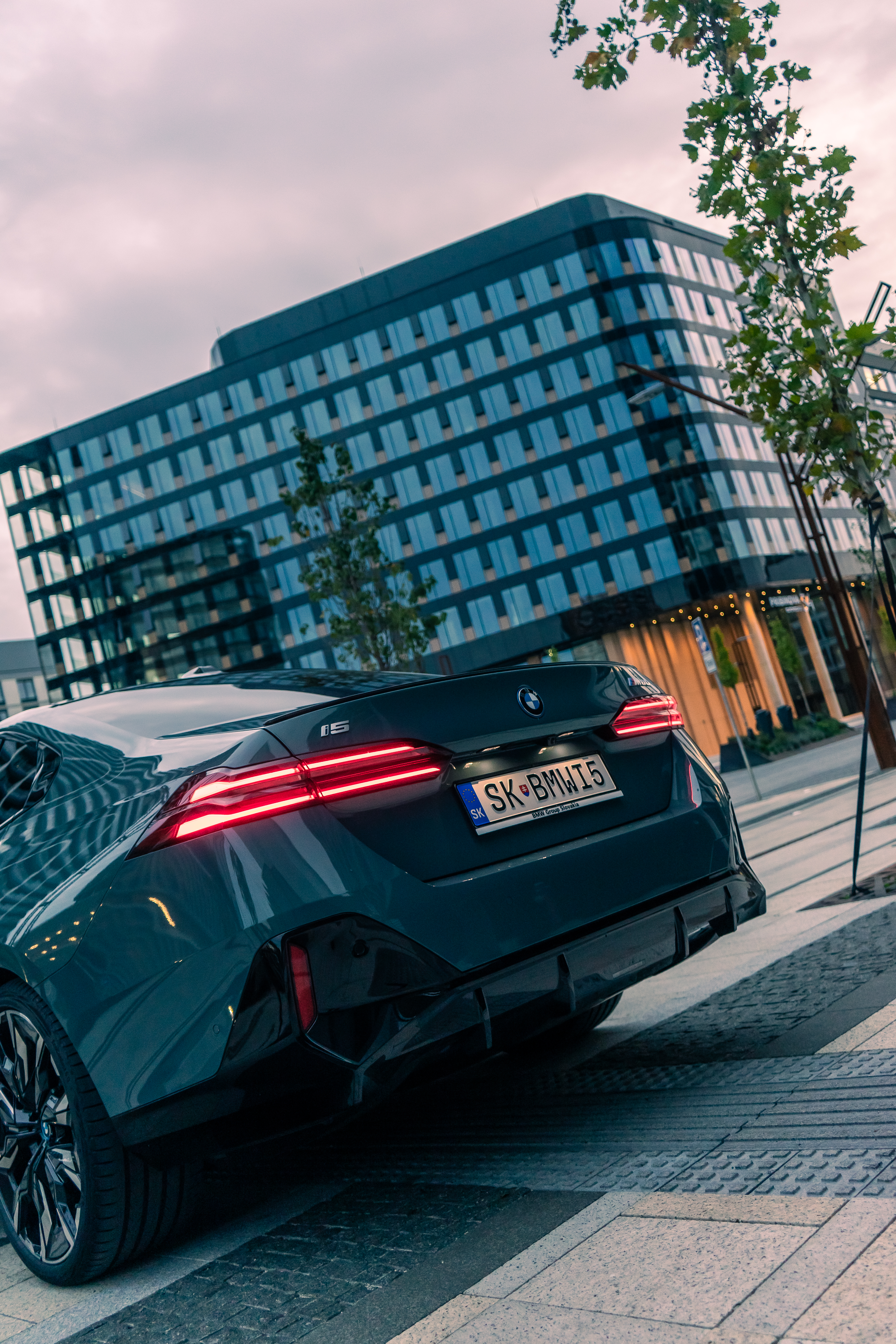 New BMW i5 M60 xDrive – Cape York Green Metallic/ BMW Individual 'Merino' Silverstone II/Atlas Grey – Location in Bratislava, Slovakia (12/2023)
