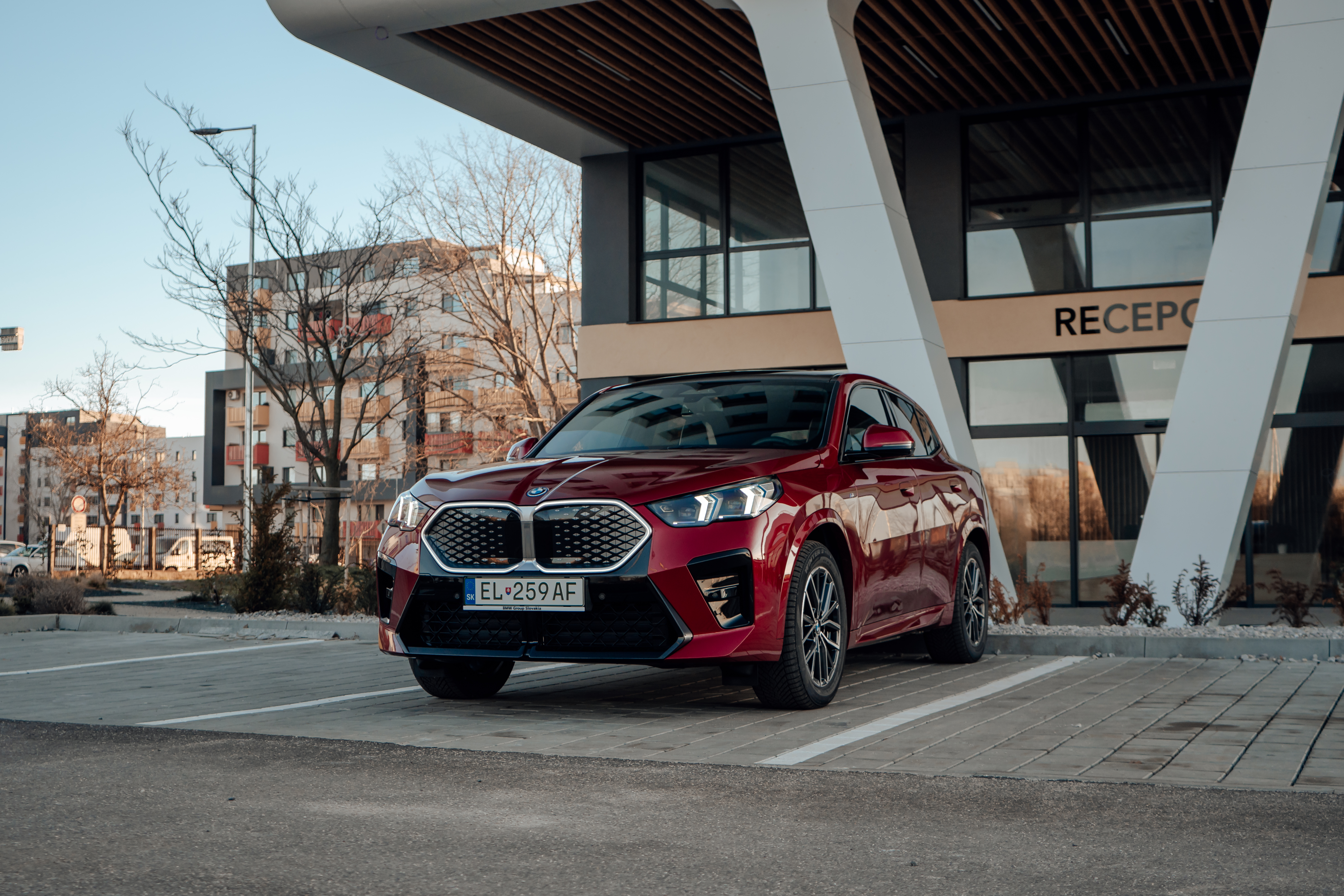 New BMW iX2 xDrive30 – Fire Red Metallic/ Veganza perforated Atlas Grey/Smoke White – Location in Bratislava, Slovakia. Ph: Samuel Zaťko - @samkoza (03/2024)
