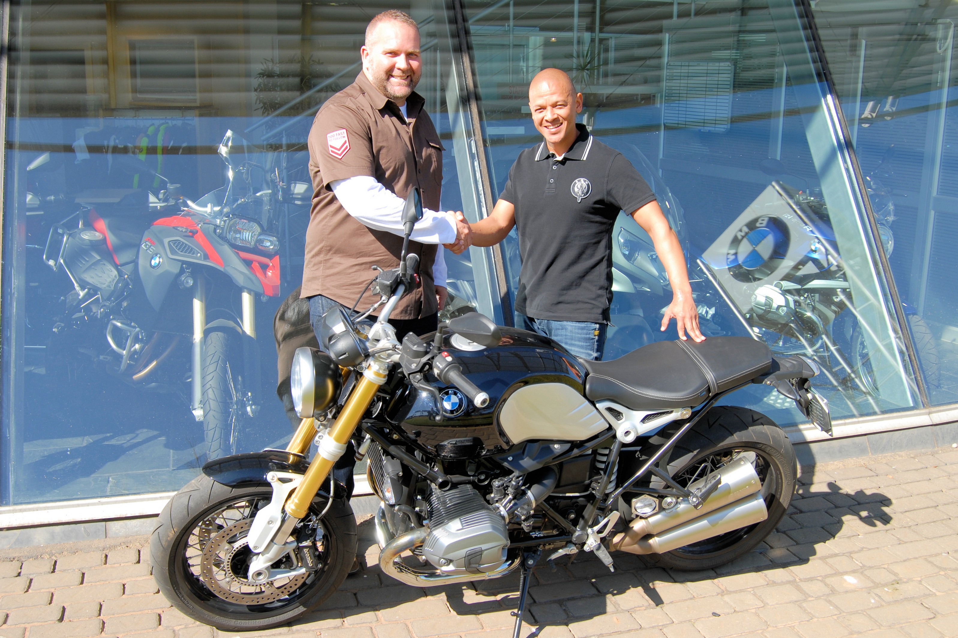 Greg Coetzee, Marketing Manager at BMW Motorrad South Africa, with Lance Isaacs. (07/2014)