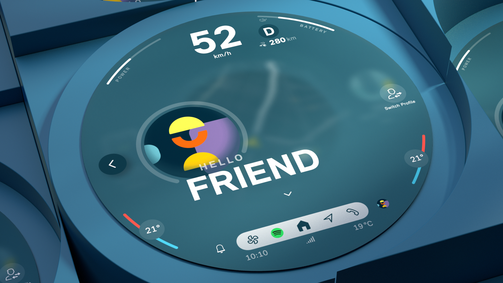 Personalisation: Colorwheel to adjust the user interface design. (Details in screen designs may differ in production vehicles. Third party content ...