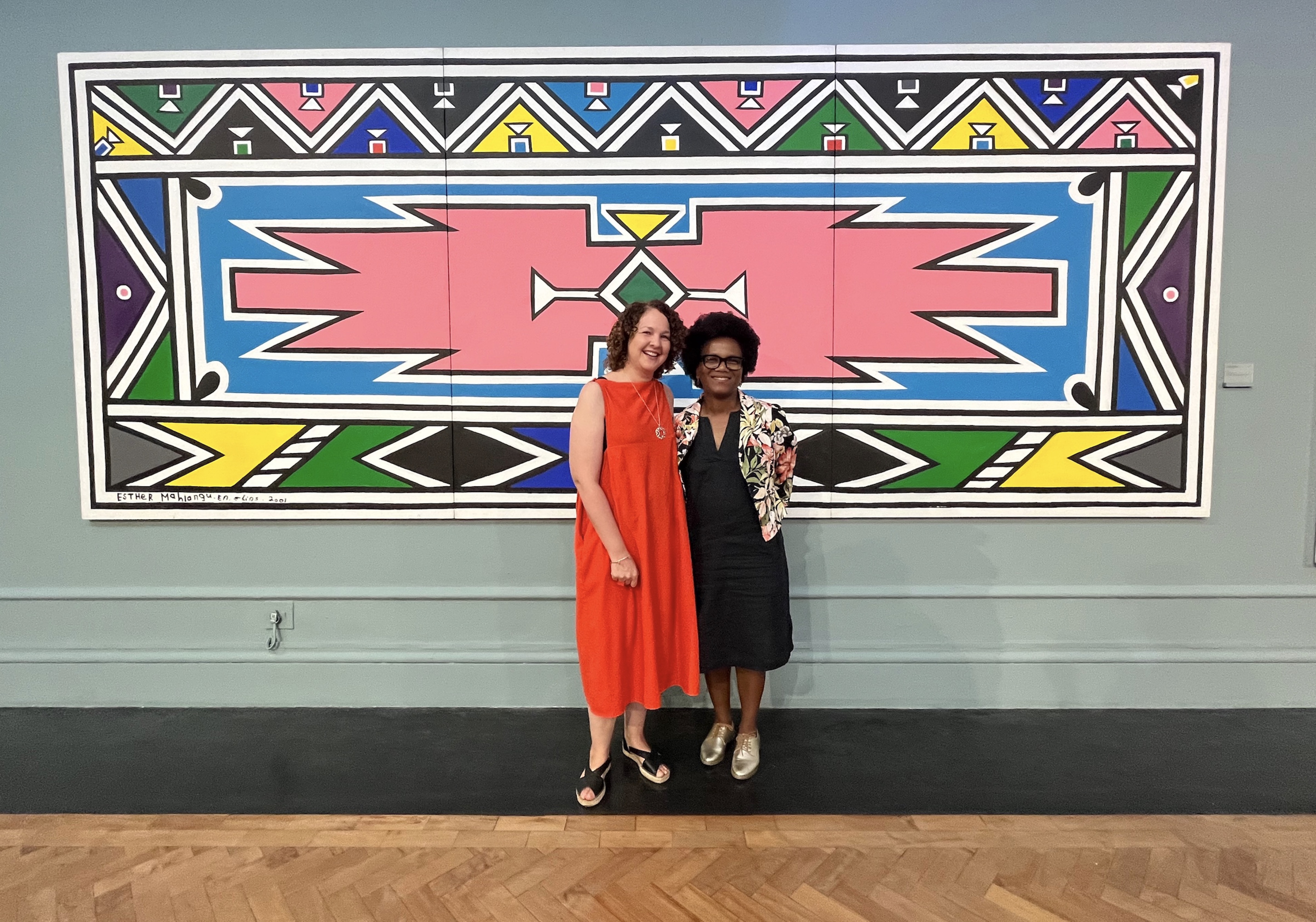 Andrea Lewis, curator of Prints and Drawings at Iziko Museums of South Africa, and curator Nontobeko Ntombela at the VIP Opening of "Then I Knew I Was Good at Painting": Esther Mahlangu. A Retrospective, Iziko South African National Gallery, 2024. © Iziko Museums/Nigel Pamplin (02/2024)