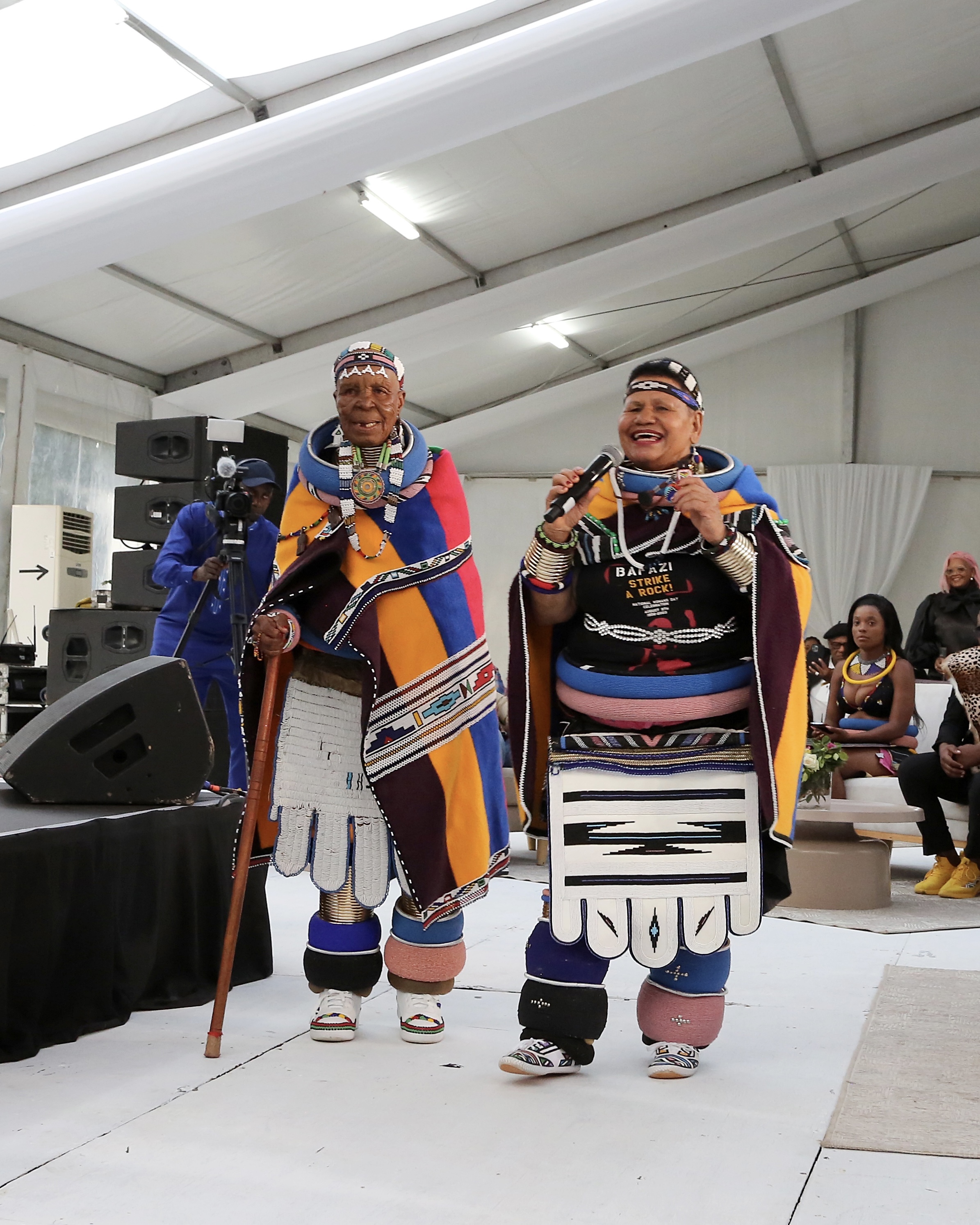 Artist Esther Mahlangu and musician Nothembi Mkhwebane at the VIP Opening of "Then I Knew I Was Good at Painting": Esther Mahlangu. A Retrospective, Iziko South African National Gallery, 2024. © Iziko Museums/Nigel Pamplin (02/2024)