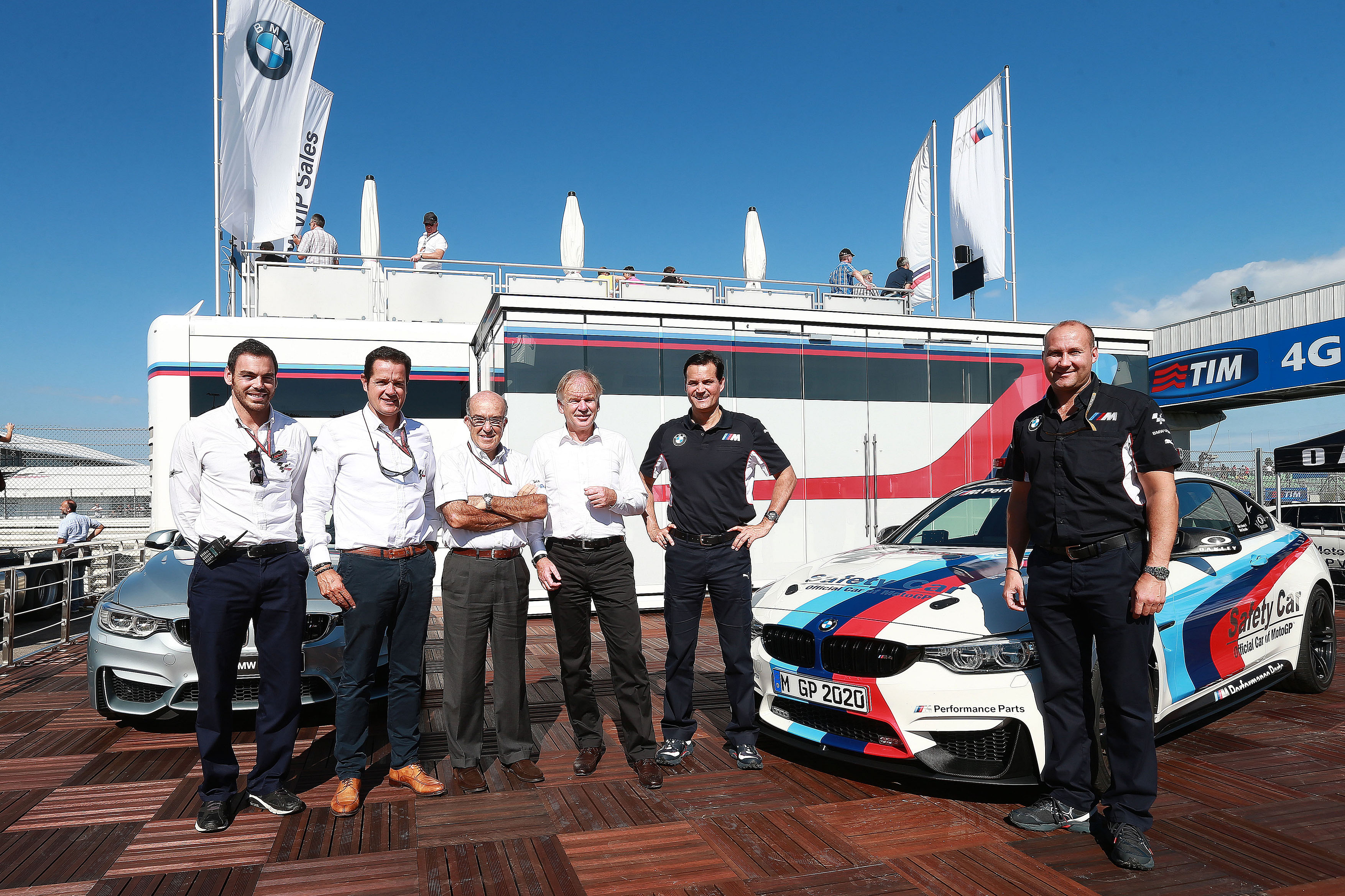 Albert Garcia, Sponsoring Executive Commercial Department Dorna Sports, Pau Serracanta, Managing Director Commercial Department Dorna Sports, Carmelo Ezpeleta, CEO Dorna Sports, Dr. Friedrich Nitschke, President BMW M Division, Thomas Schemera, Director Sales and Marketing BMW M Division, Axel Mittler, BMW M Division, Head of Cooperation MotoGP (09/2014)