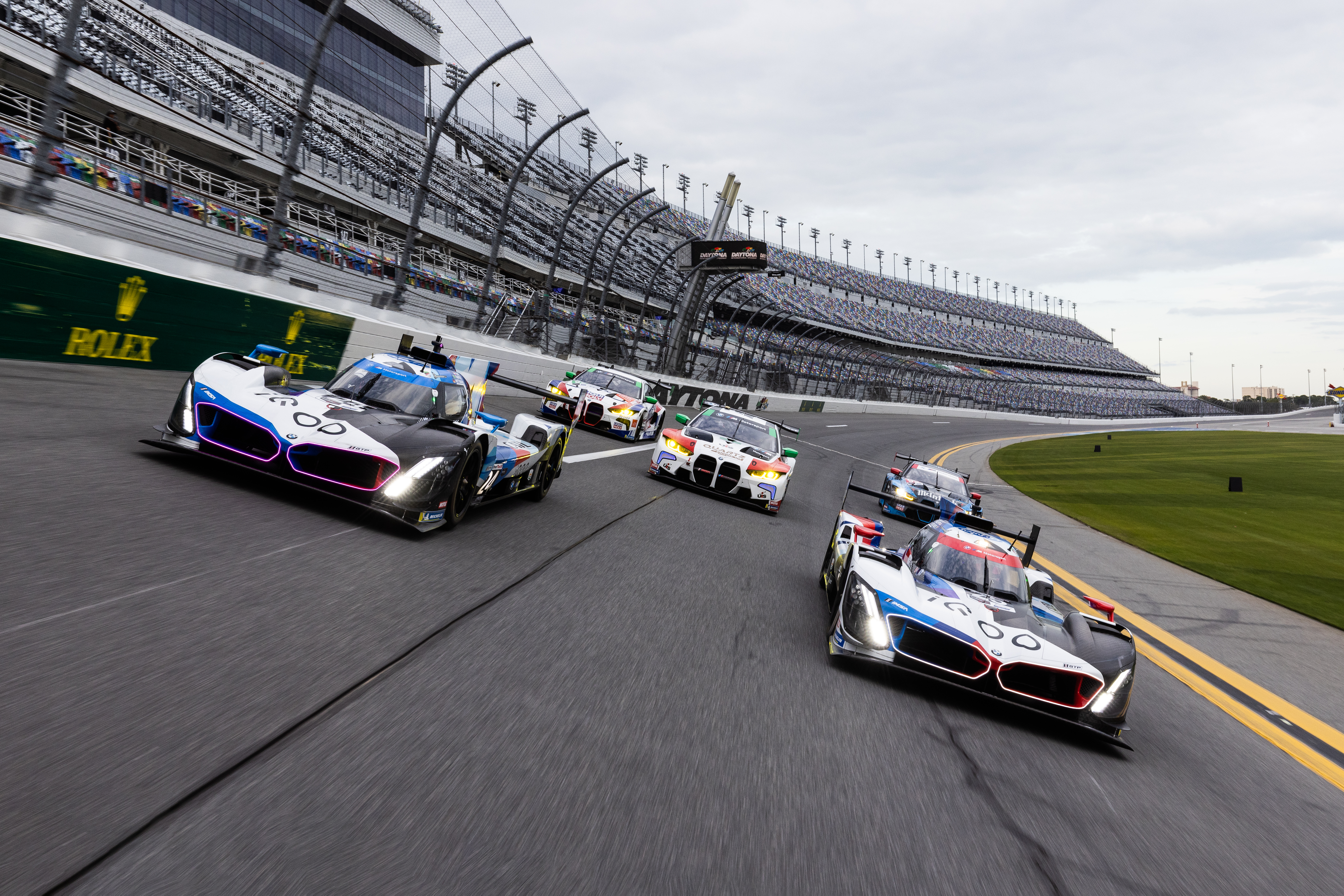 Daytona (USA), 20-22 January 2023. BMW M Hybrid V8, LMDh, BMW M4 GT3, car to car, photoshoot, Daytona International Speedway, BMW M Team RLL, Turner Motorsport, Paul Miller Racing.