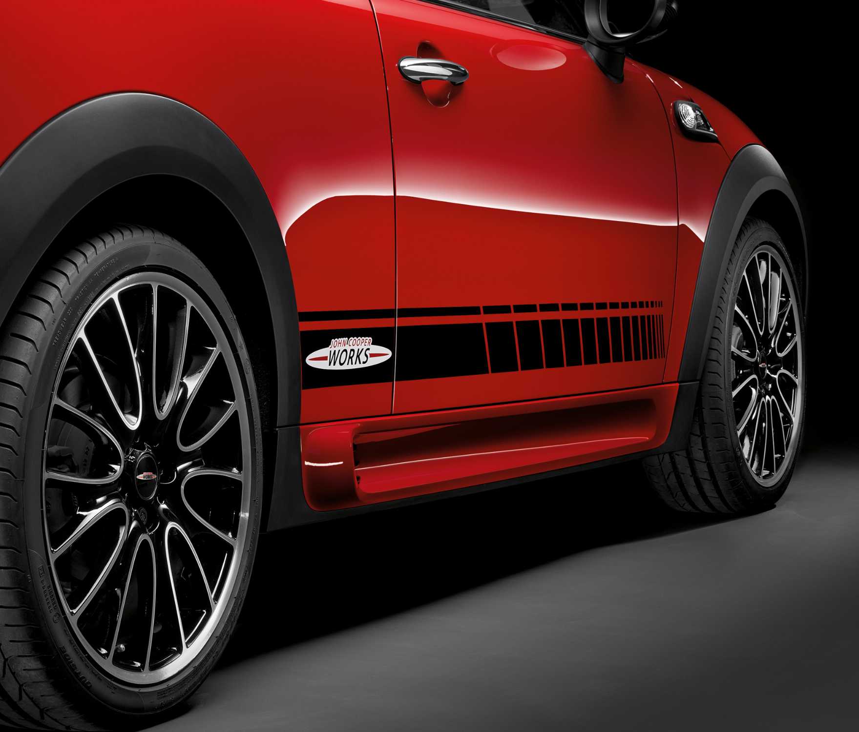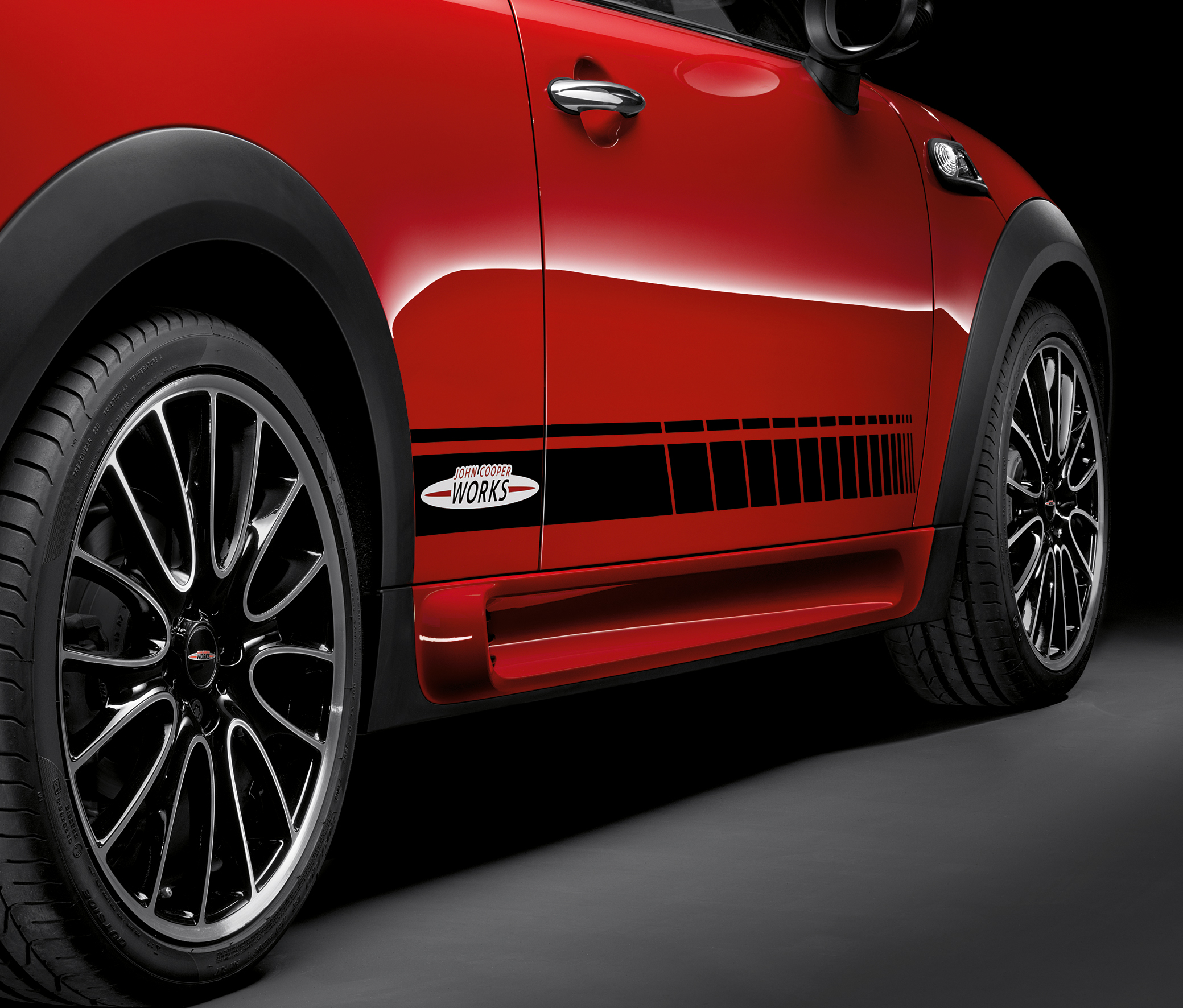 MINI Cooper S - MINI John Cooper Works - John Cooper Works Seitenstreifen schwarz, 18'' Cross spoke Schwarz glanzgedreht (11/2011).