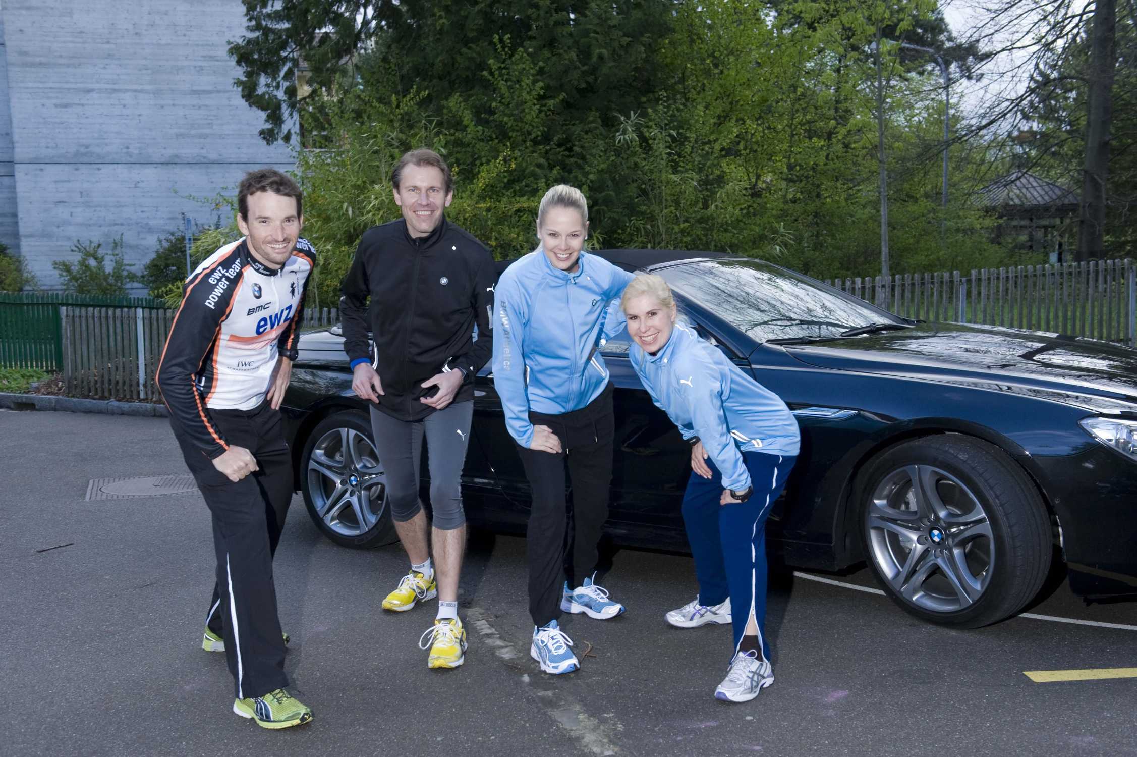 Zürich Marathon 2012 - Das BMW Promiteam am Zürich Marathon 2012. Ronnie Schildknecht, Reinhard Ahlborn, Linda Fäh und Denise Biellmann. (vlnr) (04/2012)
