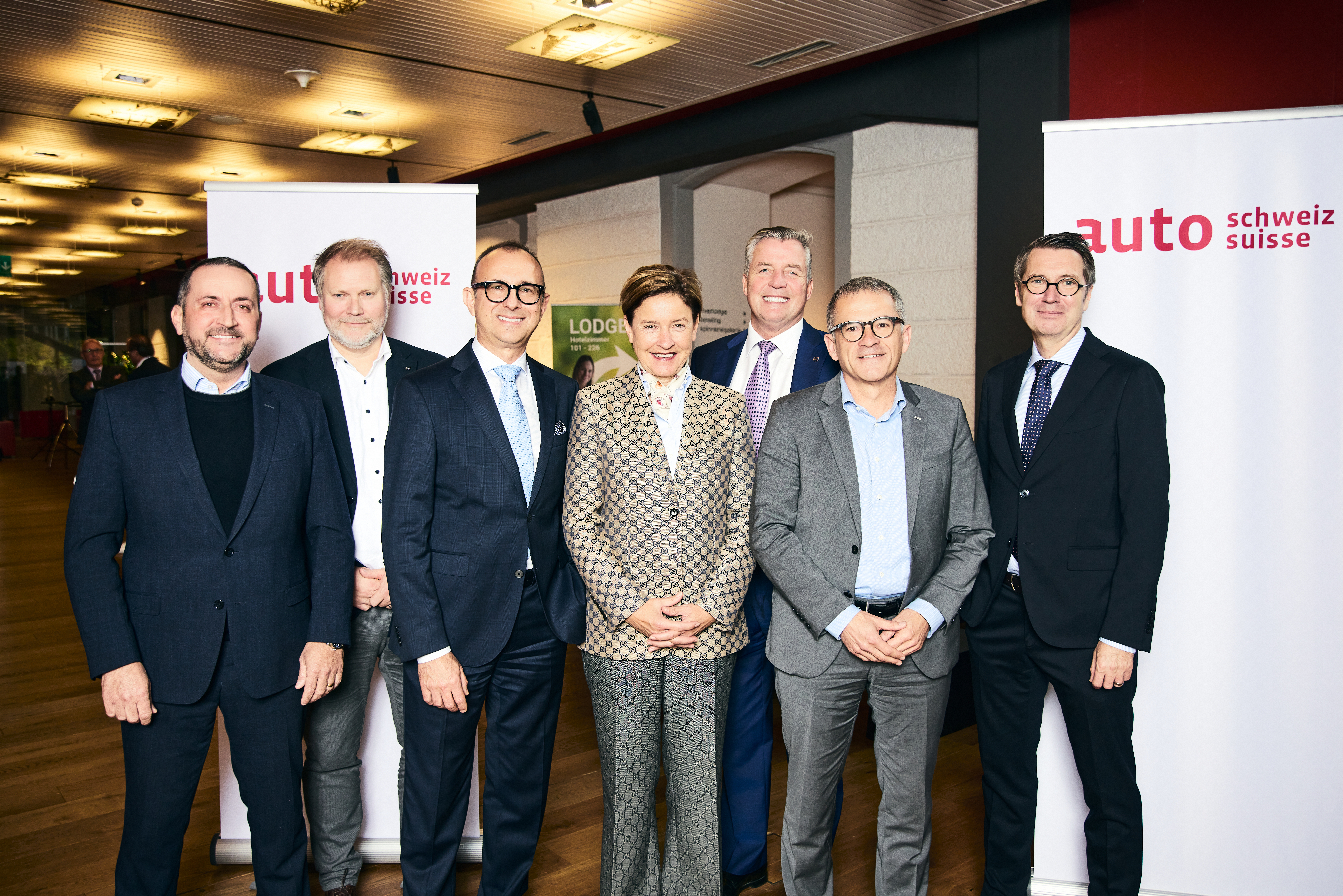 Von links nach rechts: Vizepräsident Donato Bochicchio, Emil Frey Gruppe, Managing Director PCDO und LOGEP Vorstandsmitglied Matthias Walker, Managing Director & Vice-President of the Board of Directors Mazda (Suisse) SA Vorstandsmitglied Sergio Solero, President & CEO BMW (Schweiz) AG Vorstandsmitglied Claudia Meyer, Managing Director Renault Group Switzerland Vorstandsmitglied Roland Schell, CEO Mercedes-Benz Schweiz AG Vizepräsident Helmut Ruhl, CEO AMAG Group AG Präsident Peter Grünenfelder (10/2024)