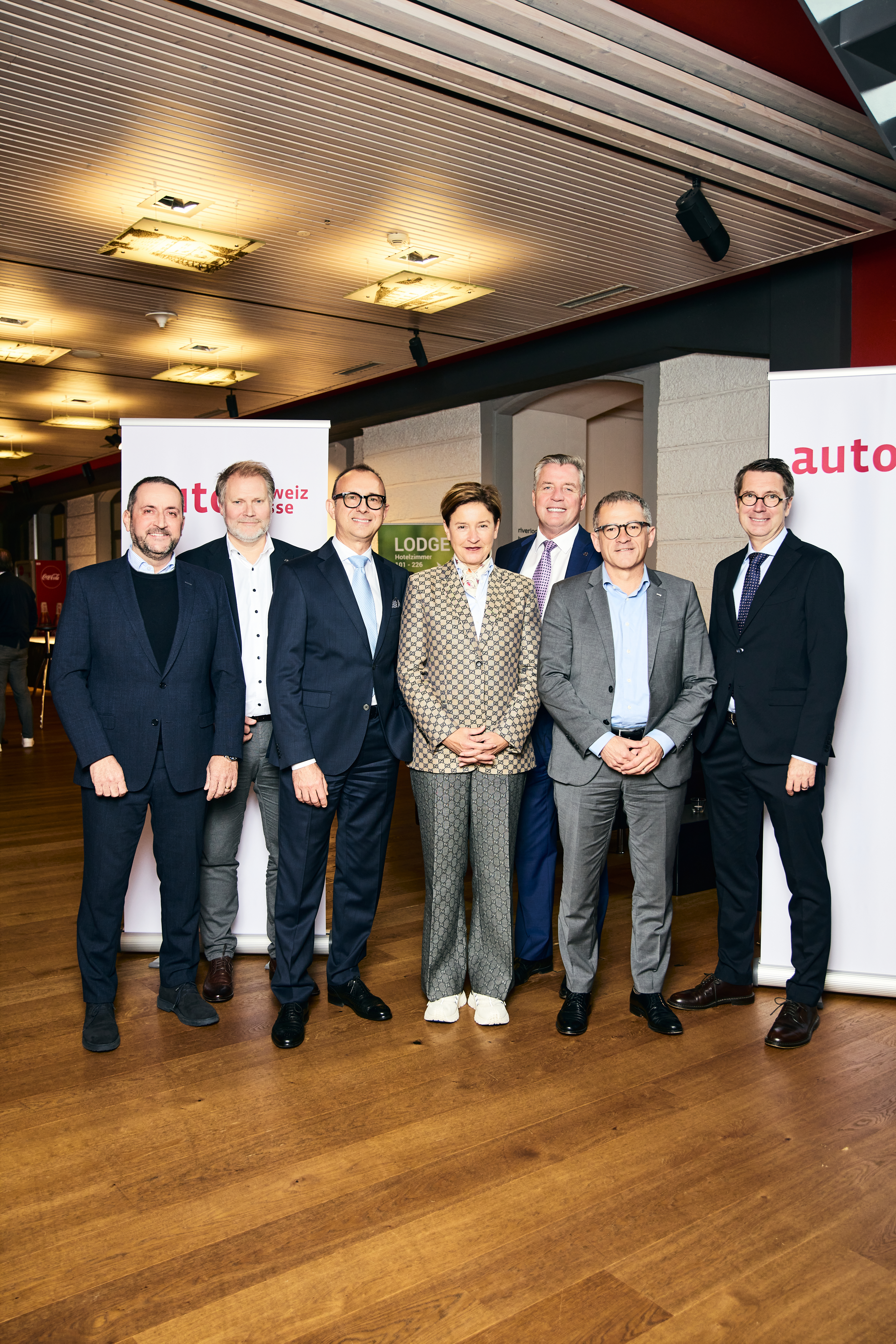 Von links nach rechts: Vizepräsident Donato Bochicchio, Emil Frey Gruppe, Managing Director PCDO und LOGEP Vorstandsmitglied Matthias Walker, Managing Director & Vice-President of the Board of Directors Mazda (Suisse) SA Vorstandsmitglied Sergio Solero, President & CEO BMW (Schweiz) AG Vorstandsmitglied Claudia Meyer, Managing Director Renault Group Switzerland Vorstandsmitglied Roland Schell, CEO Mercedes-Benz Schweiz AG Vizepräsident Helmut Ruhl, CEO AMAG Group AG Präsident Peter Grünenfelder (10/2024)