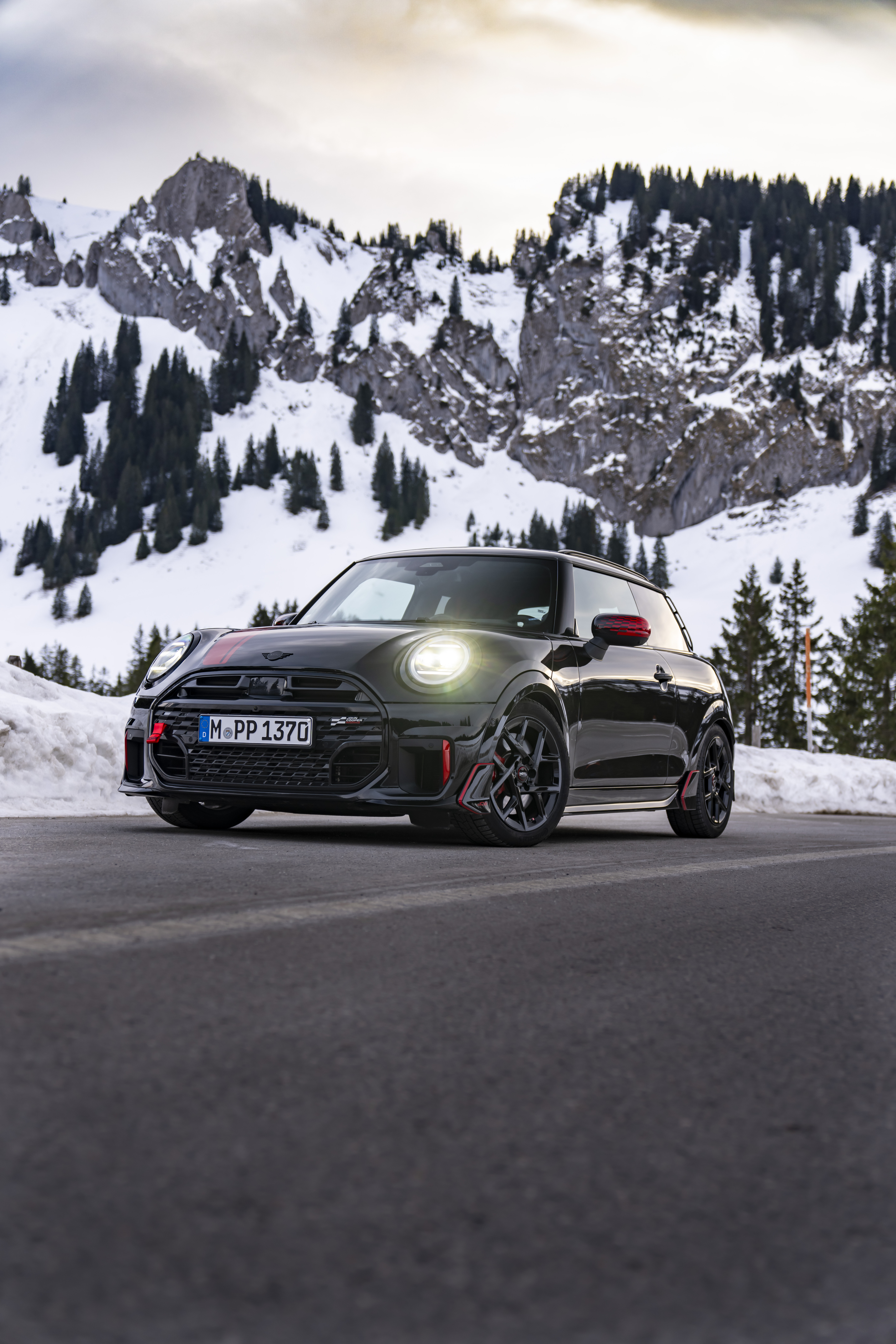 MINI John Cooper Works (WLTP kombiniert: Energieverbrauch 6,8 – 6,5 l/100km; CO2 Emissionen: 154 – 147 g/km; CO2-Klasse: E). Alle hier beschriebenen Modellvarianten, Ausstattungen und technischen Daten beziehen sich auf den Markt Deutschland. Verbrauchs- und Emissionsangaben beziehen sich auf PKW-EnVKV Verordnung für Deutschland.
