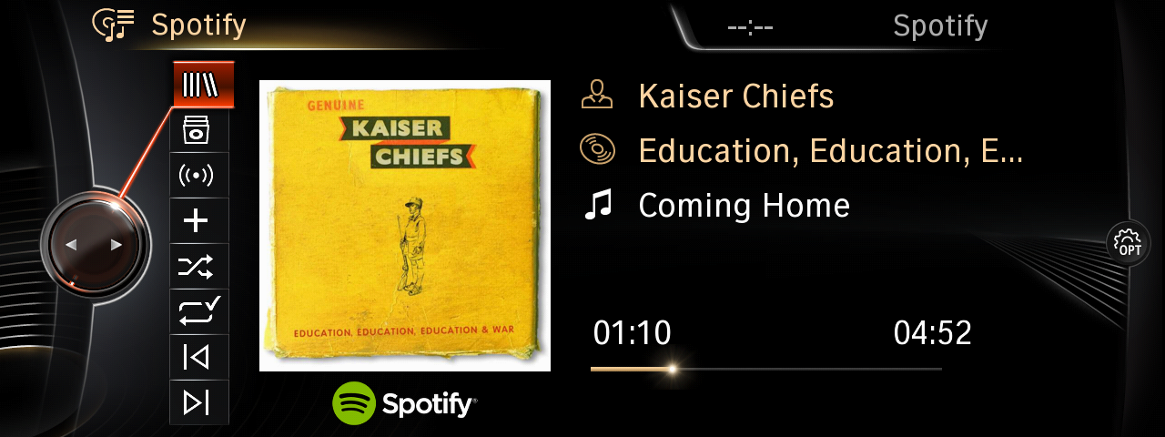 - MINI Connected App integration allows in-car browsing by genre, artist, album and track