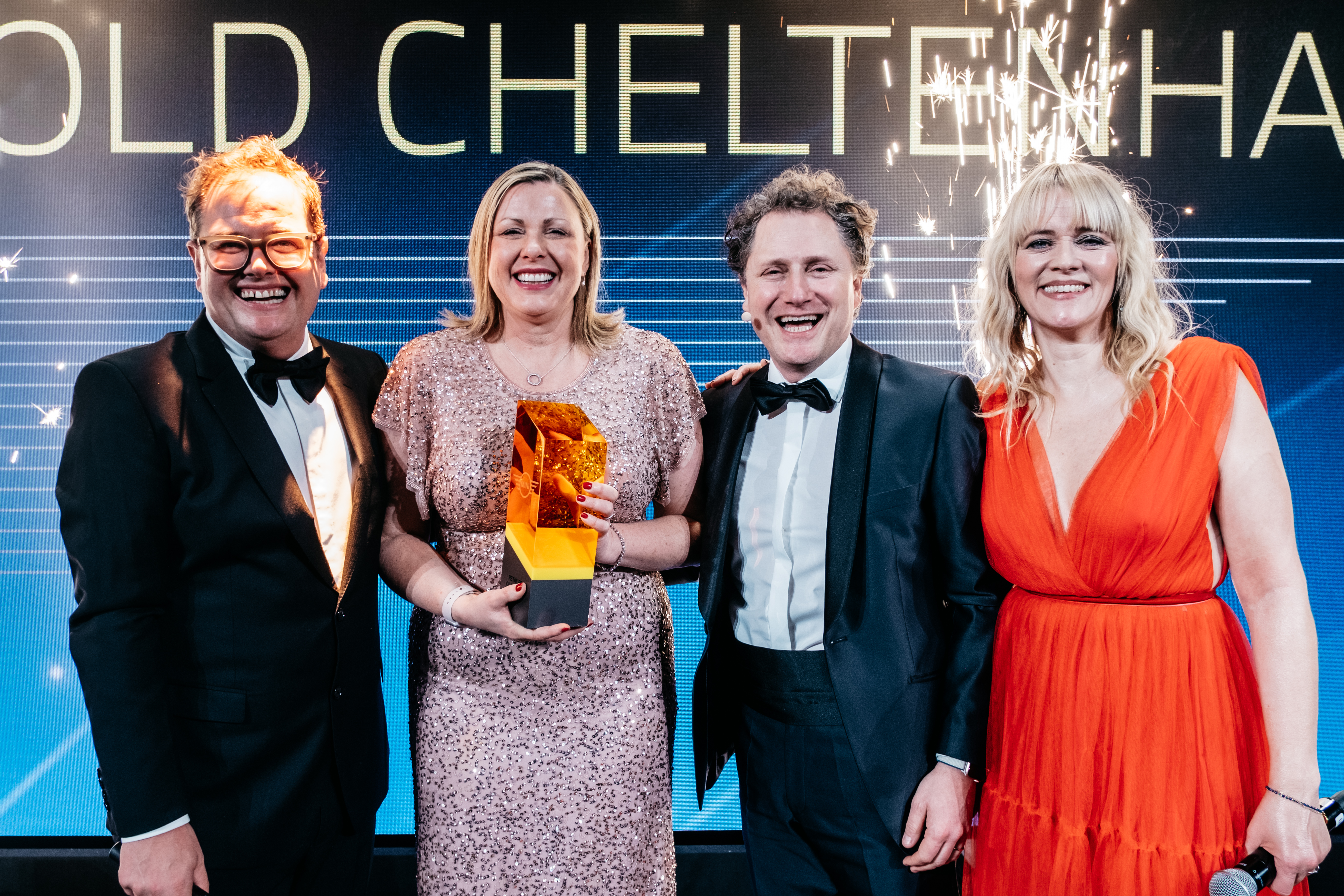 BMW Group UK and Ireland names 2025 Retailers of the Year: (L-R) David Beattie, Director MINI UK and Ireland, Helen Westby, Managing Director at BMW Group Ireland, Frank Keane Naas Road and host Dermot O'Leary.