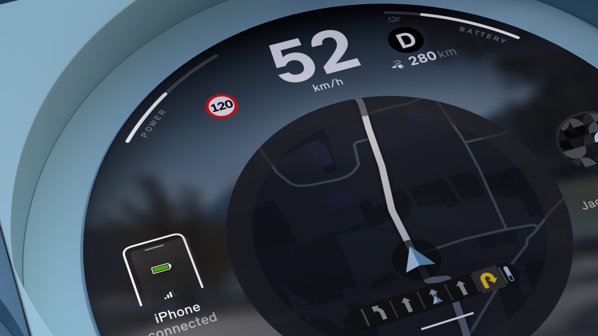 Live Vehicle information at beginning of journey in Efficient Mode.(Details in screen designs may differ in production vehicles. Third party content depends on country availability.)