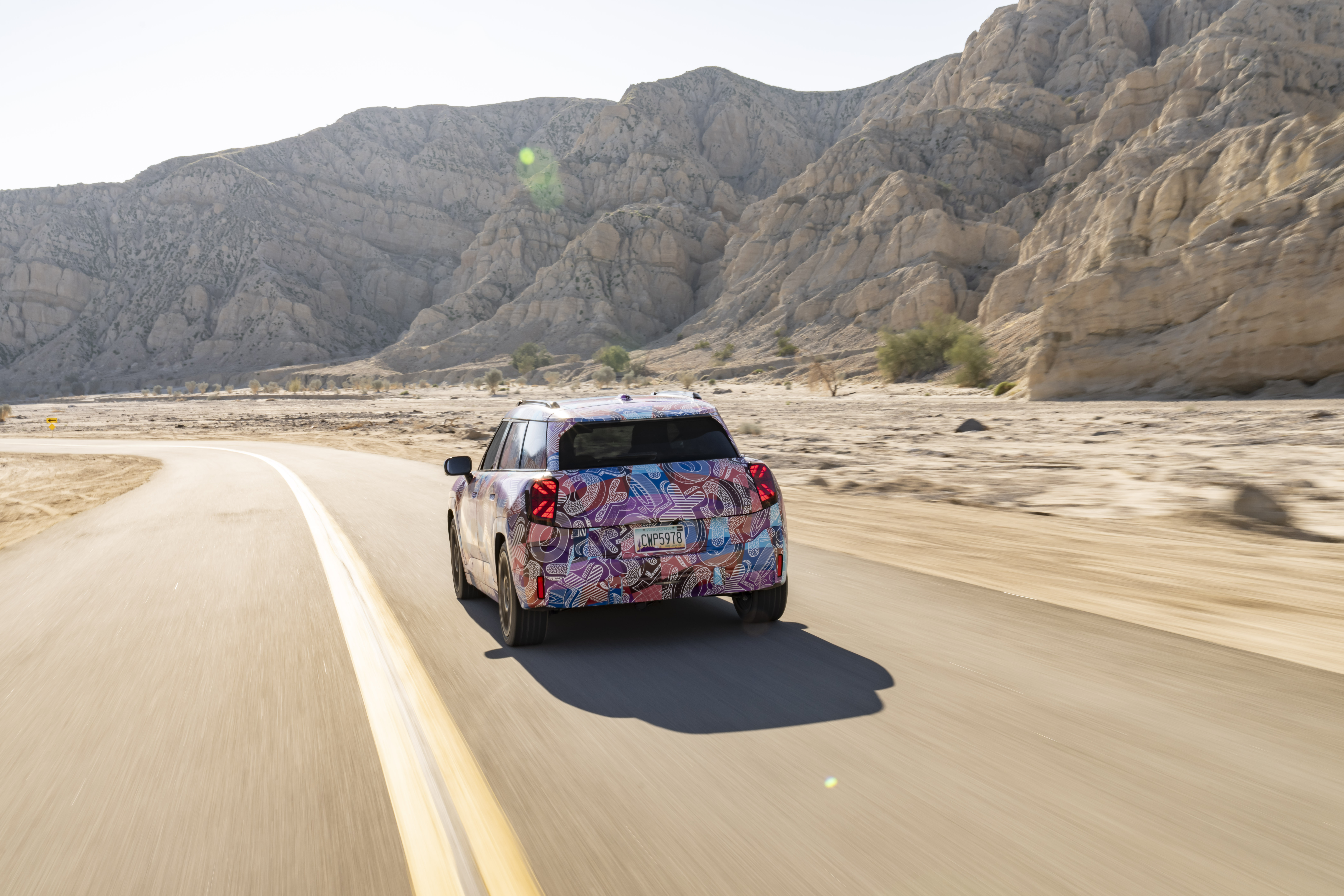 The vehicle shown is a development vehicle that is not available for sale.