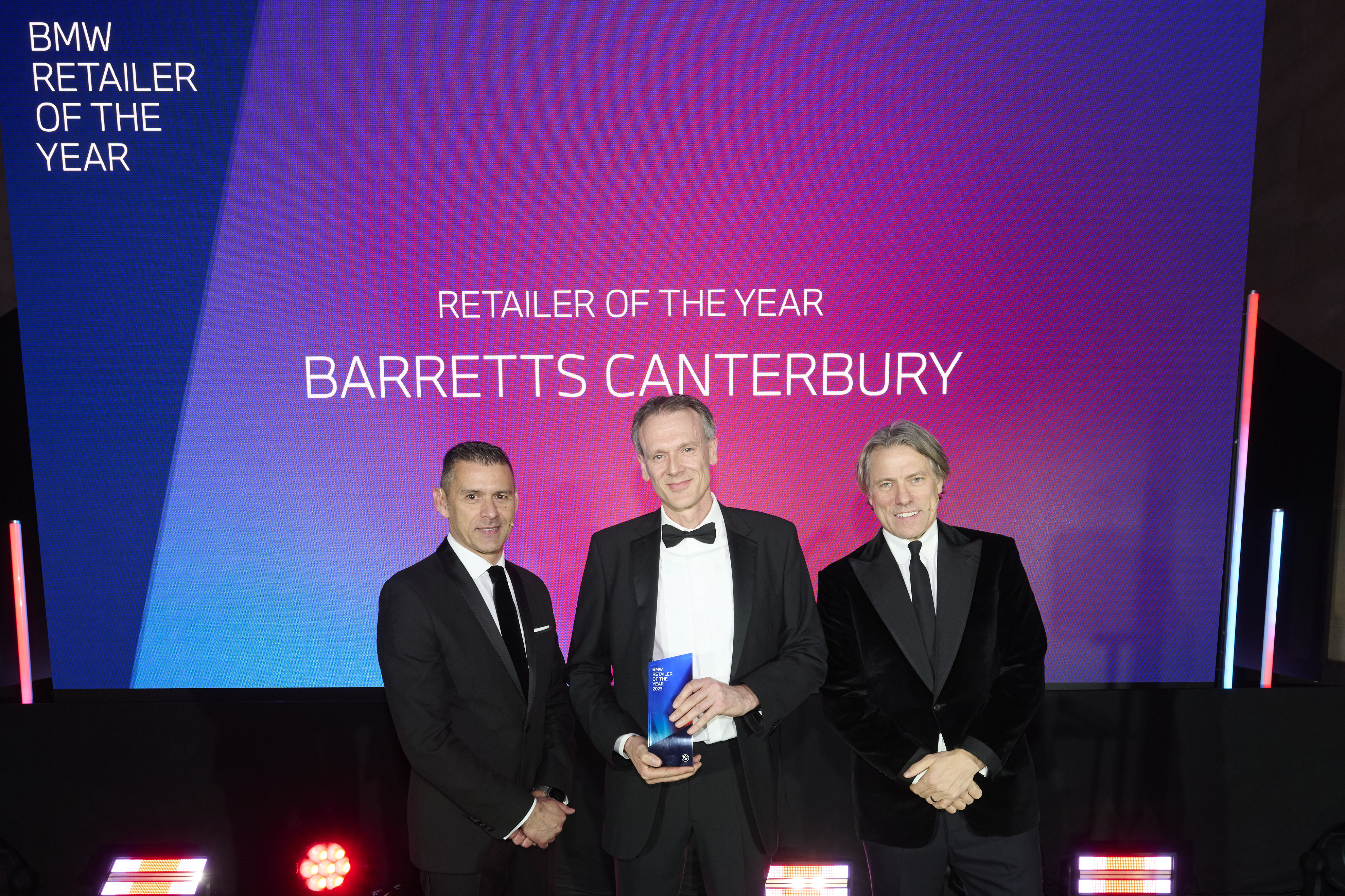 David George, Nathan Rogers and John Bishop at BMW Retailer of the Year 2023