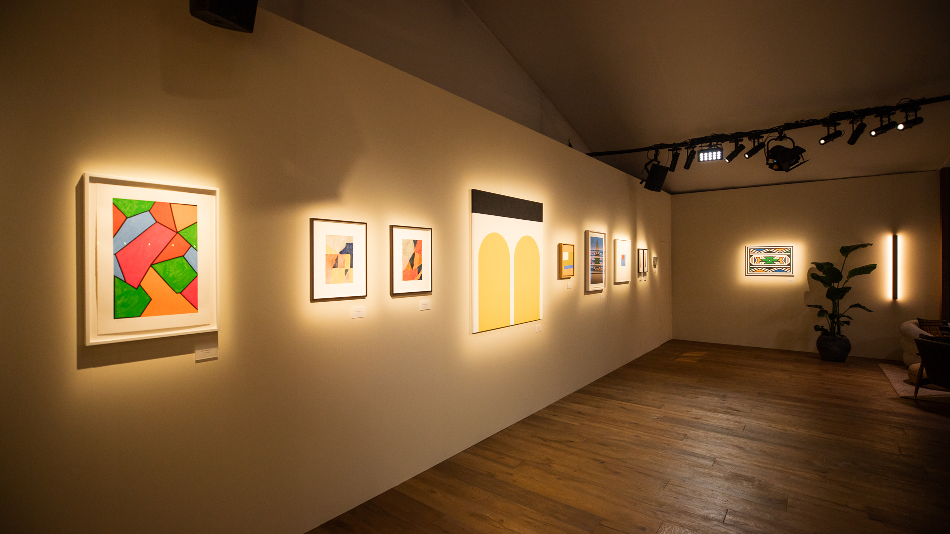 BMW Lounge at Frieze London 2024: Display of Russell Tovey's private art collection in response to Esther Mahlangus works „Ndebele Abstract“ and „Ndebele Abstract 2022“. Photo: Callum Morrison (10/2024)