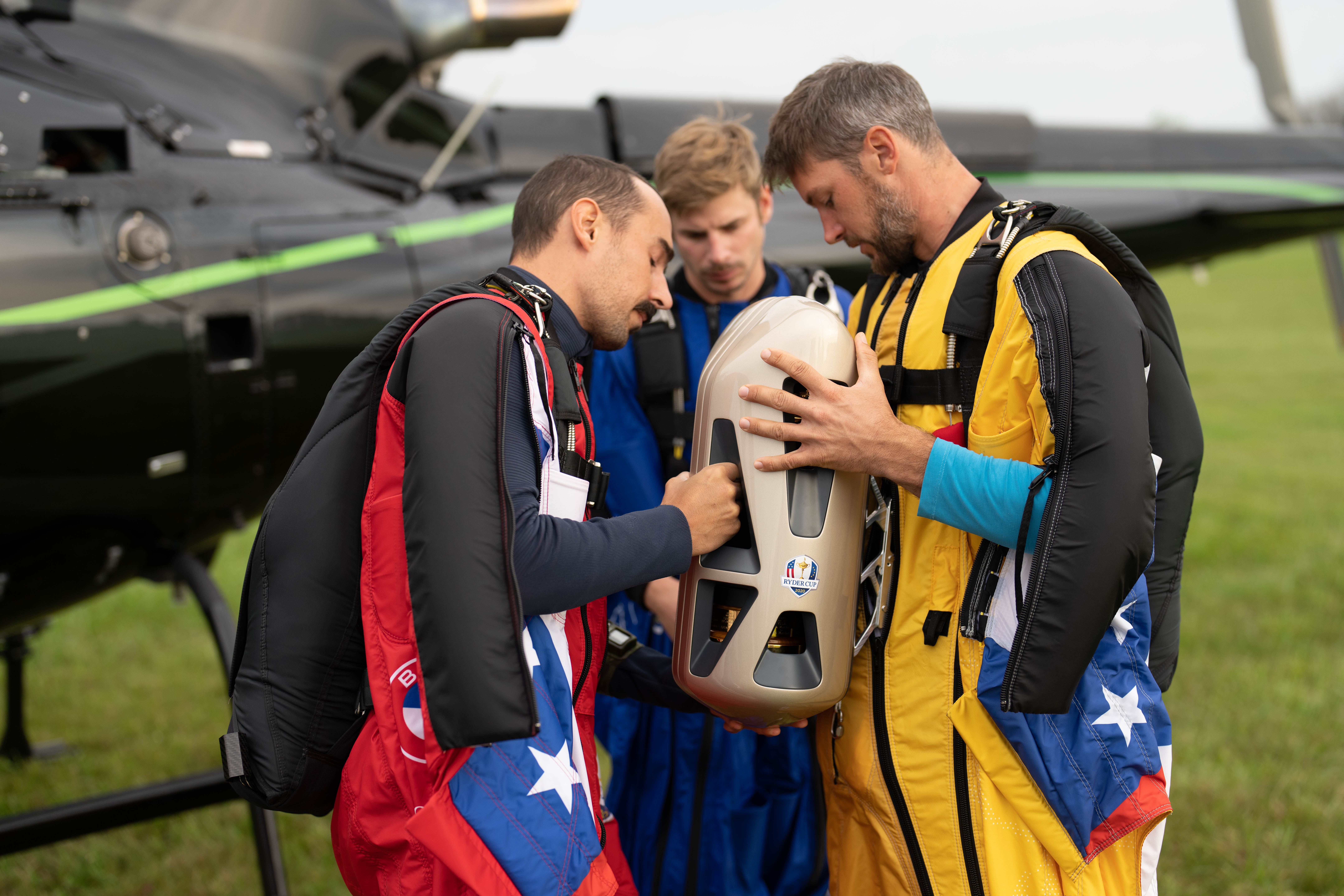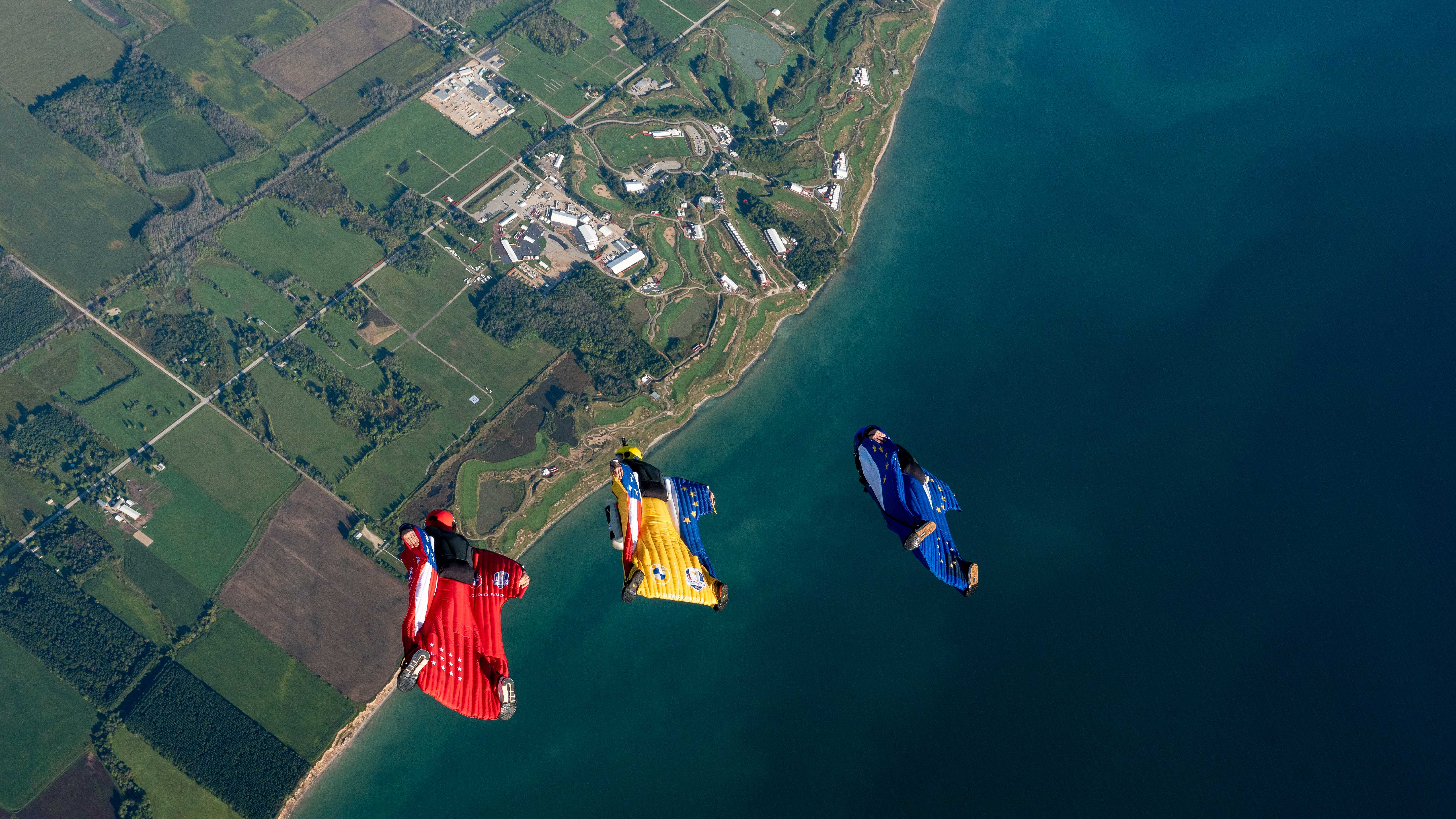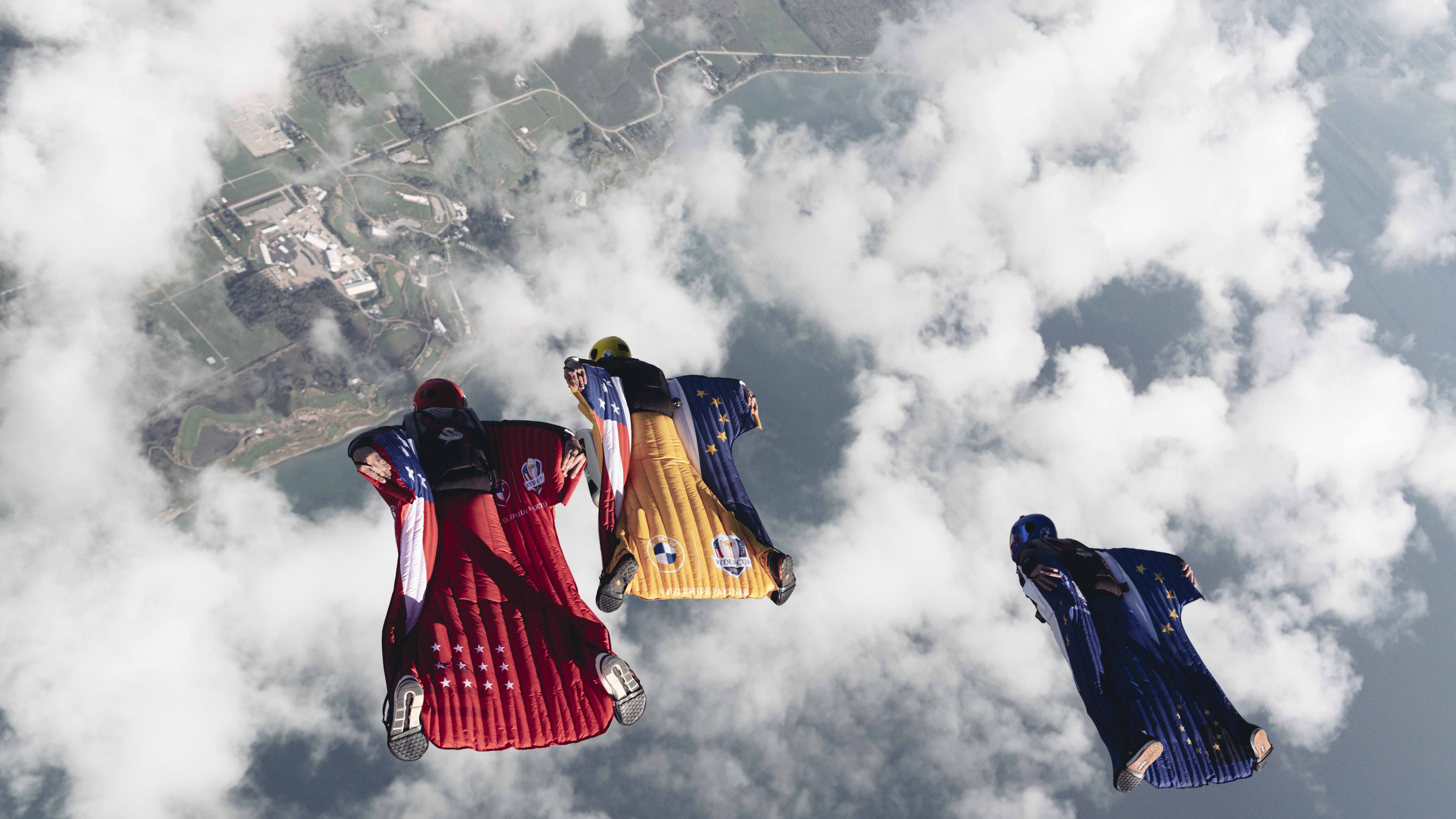 BMW helped kick off the opening ceremonies of the 43rd Ryder Cup matches in Kohler, Wisc. on Sept. 23, 2021 with spectacular aerial stunt to deliver the trophy to the event. Wingsuit pilot Peter Salzmann delivered the Ryder Cup trophy to Whistling Straits ahead of the 43rd Ryder Cup matches in a specially-designed case created by Designworks, a BMW Group company.