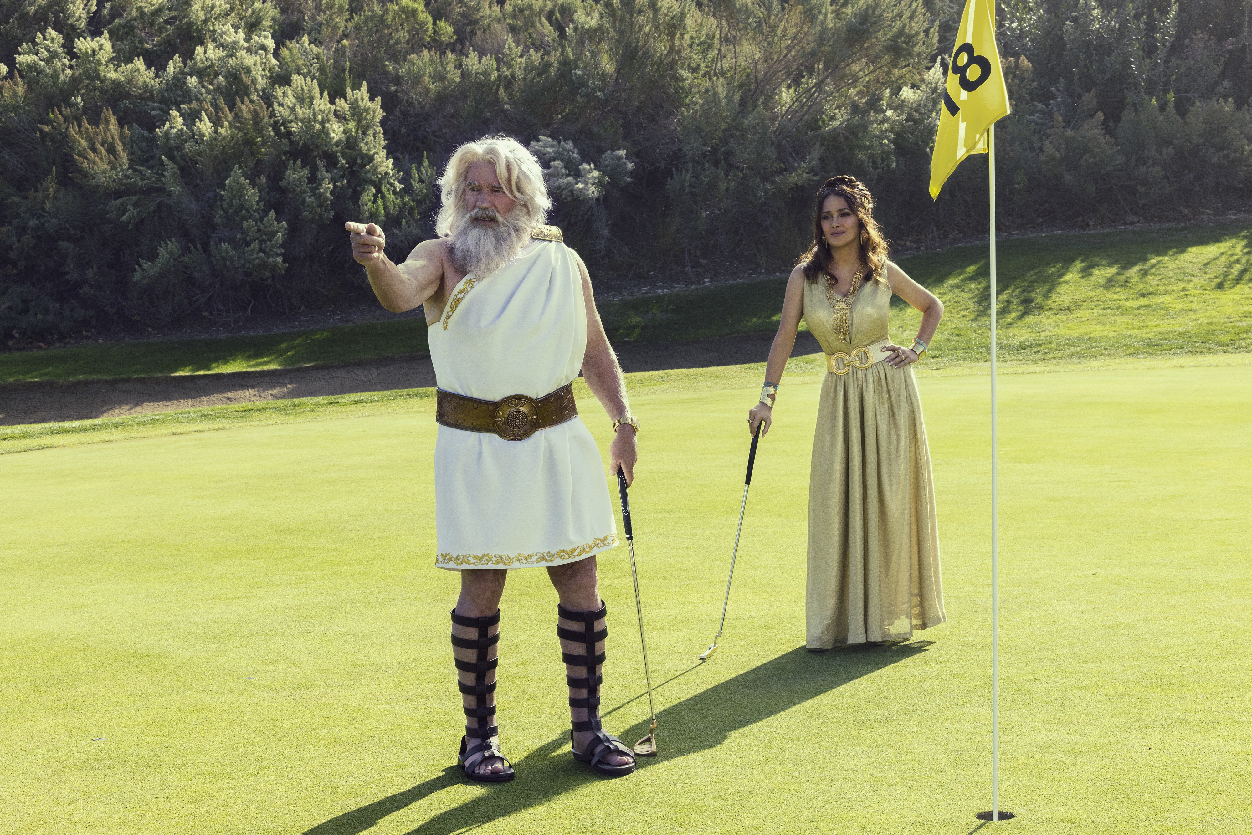Arnold Schwarzenegger and Salma Hayek Pinault star as the Greek gods Zeus and Hera in a new BMW Super Bowl advertisement that will air during the game on Sunday, February 13, 2022. The new creative will support the launch of the all-new fully electric BMW iX Sports Activity Vehicle which arrives in the U.S. next month.
