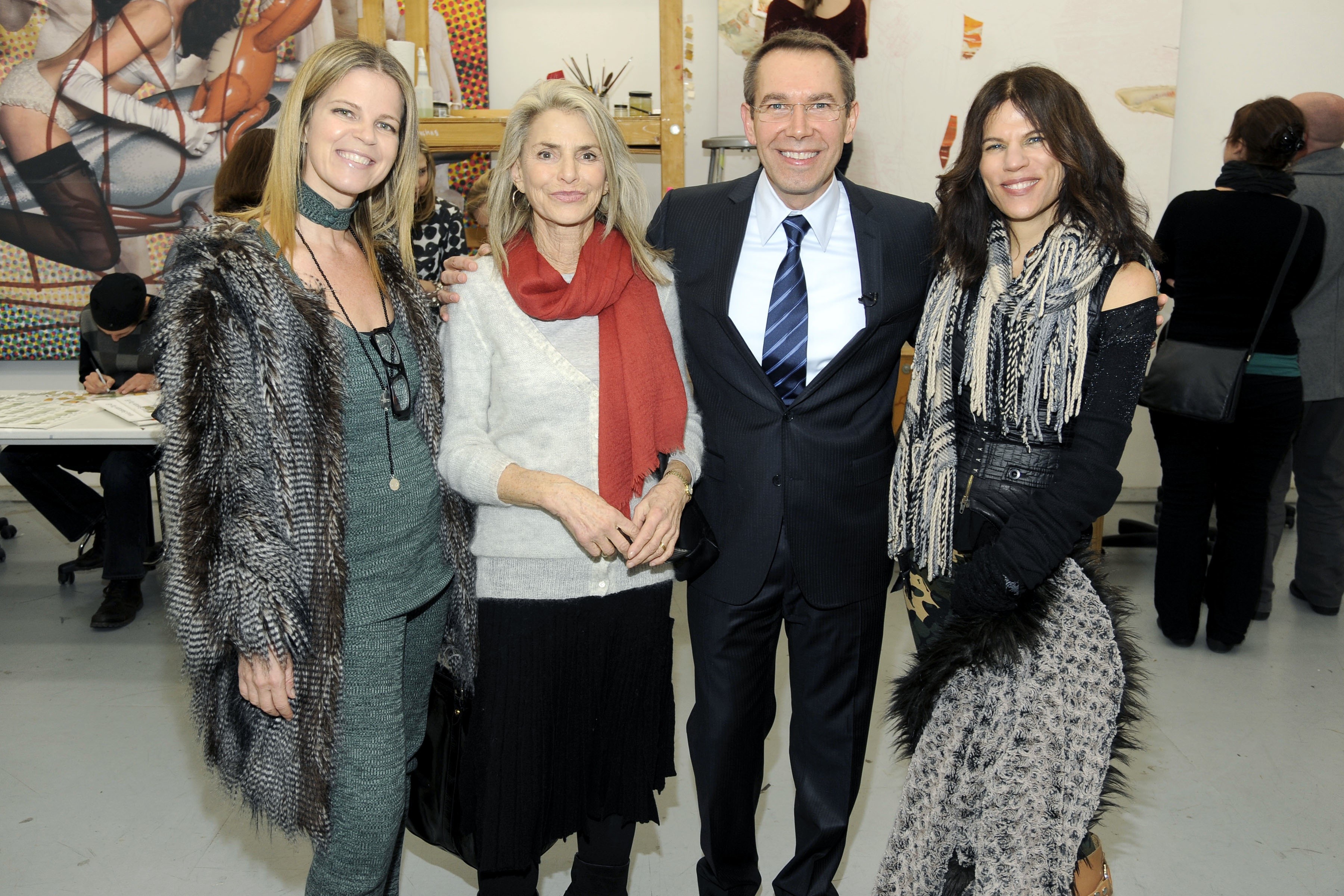 Yvonne Force Villareal, Dorothy Lichtenstein, Jeff Koons and Doreen Remen celebrate the announcement that Koons will create the 17th BMW Art Car at Koons' Manhattan studio Tuesday, February 2, 2010. Koons will join an illustrious group of artists that include Andy Warhol, David Hockney, Jenny Holzer, Roy Lichtenstein, Frank Stella, Robert Rauschenberg and Alexander Calder.© Patrick McMullan /Photo - BILLY FARRELL/PatrickMcMullan.com (02/2010)