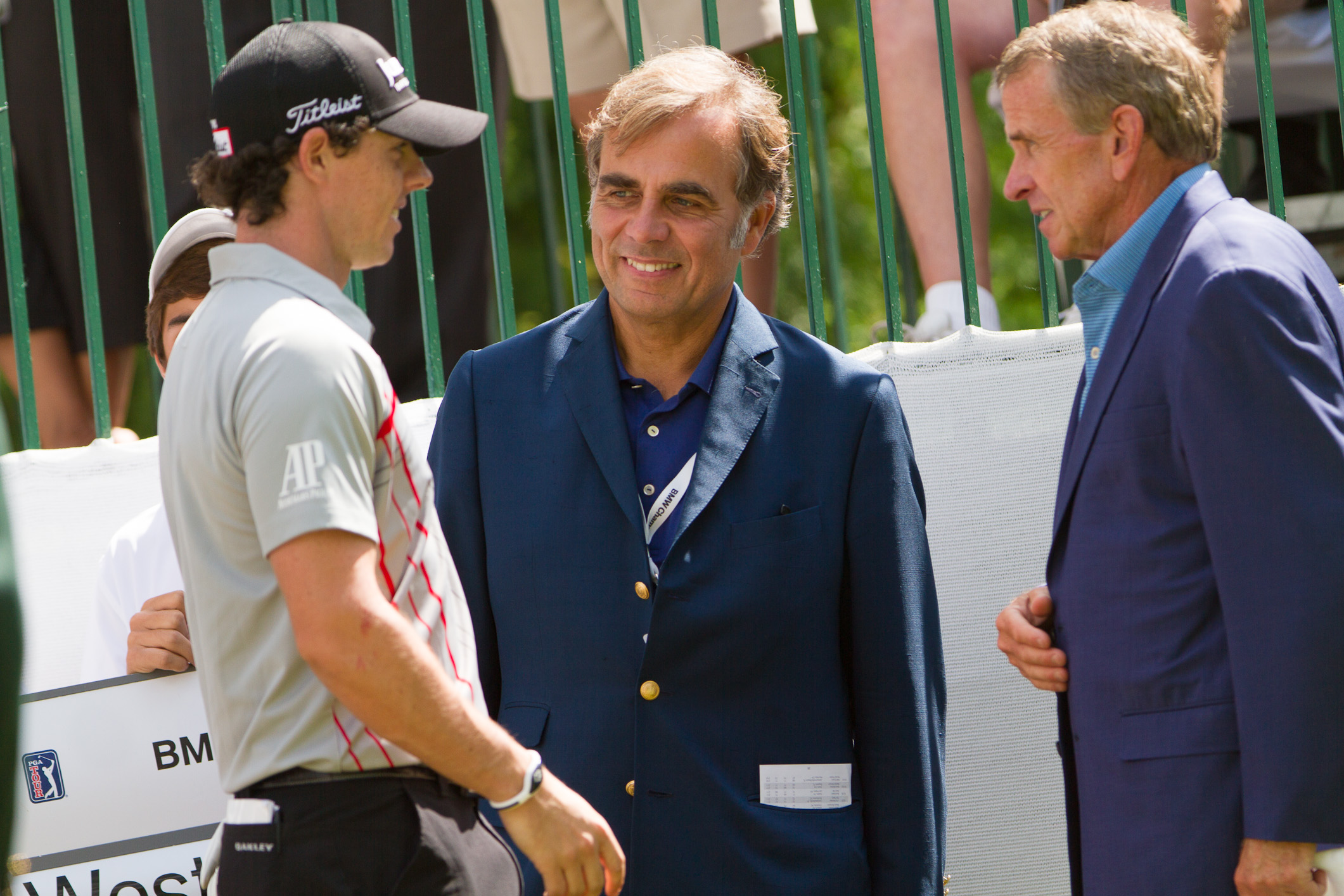 BMW North America CEO Ludwig Willisch and PGA TOUR Commissioner Tim Finchem wish PGA TOUR pro Rory McIlroy good luck before his last round of the 2012 ...
