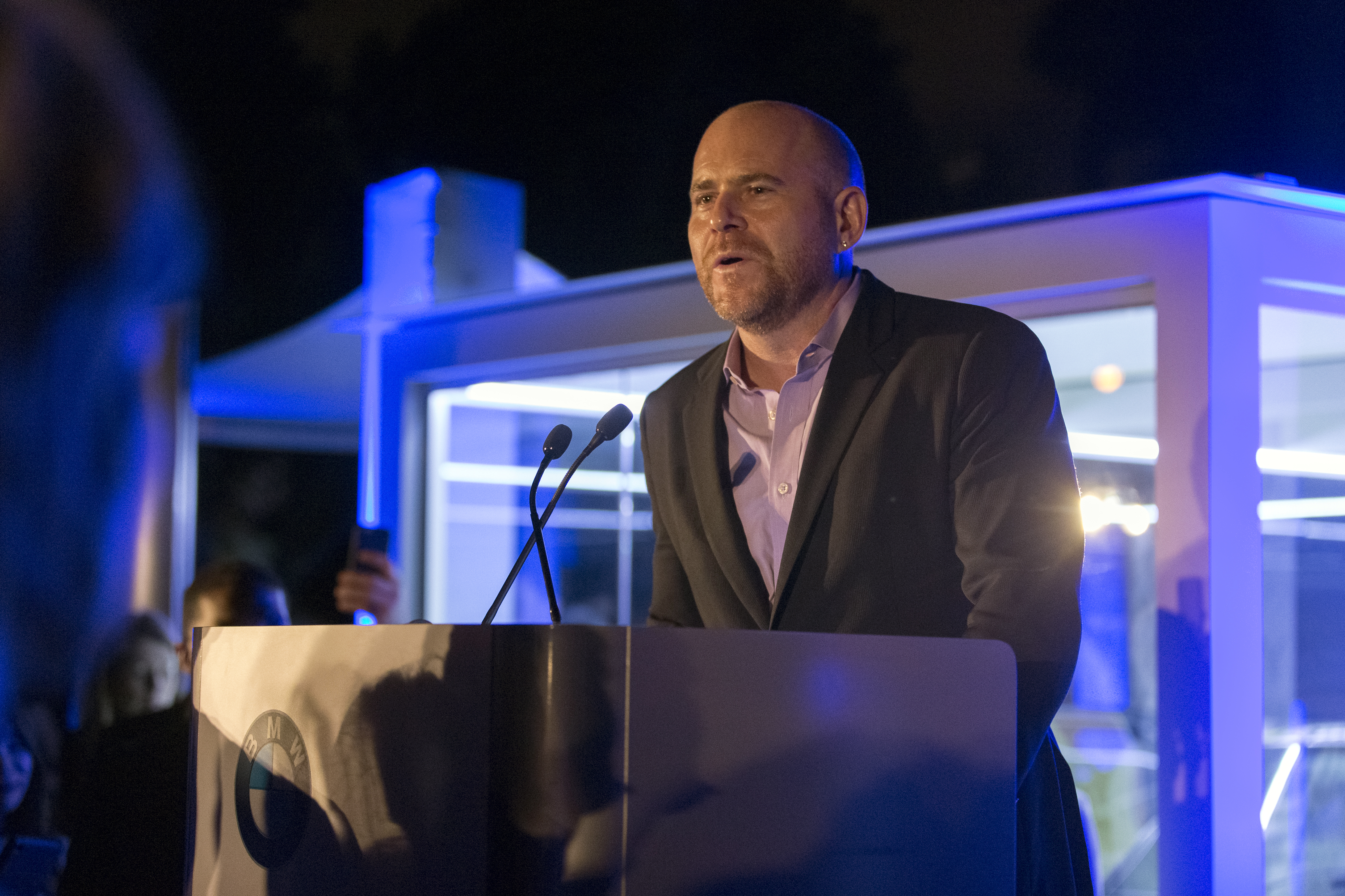 Marc Spiegler, Director of Art Basel speaking at a BMW Reception celebrating the BMW Art Journey, a new art project supporting emerging artists in ...