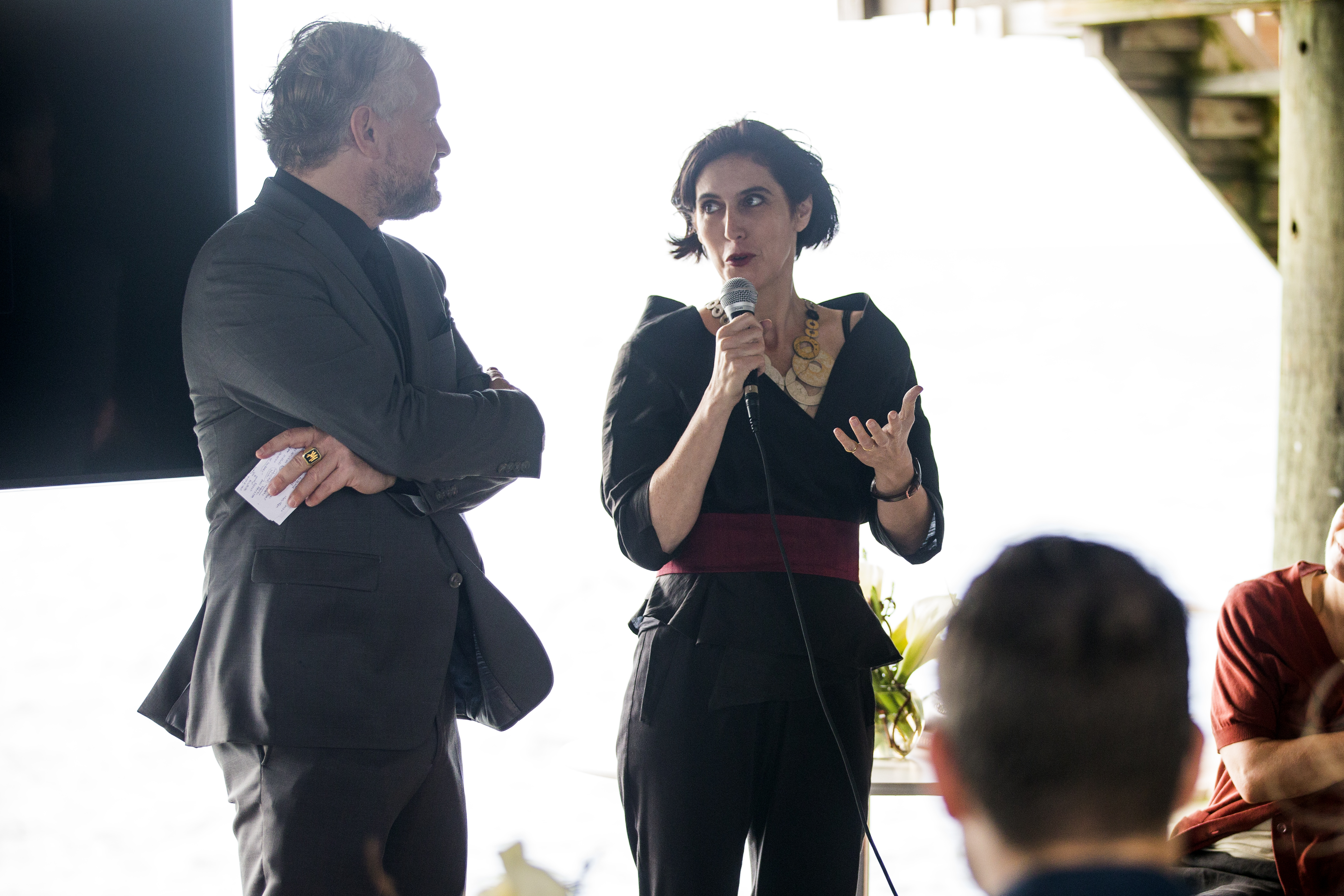 Victoria Noorthoorn, Director of Museu de Arte Moderna in Buenos Aires and BMW Art Journey jury member speaking at a BMW event celebrating the BMW Art Journey, a new art project supporting emerging artists in cooperation with Art Basel, at Stiltsville in Miami, FL on December 4, 2014.