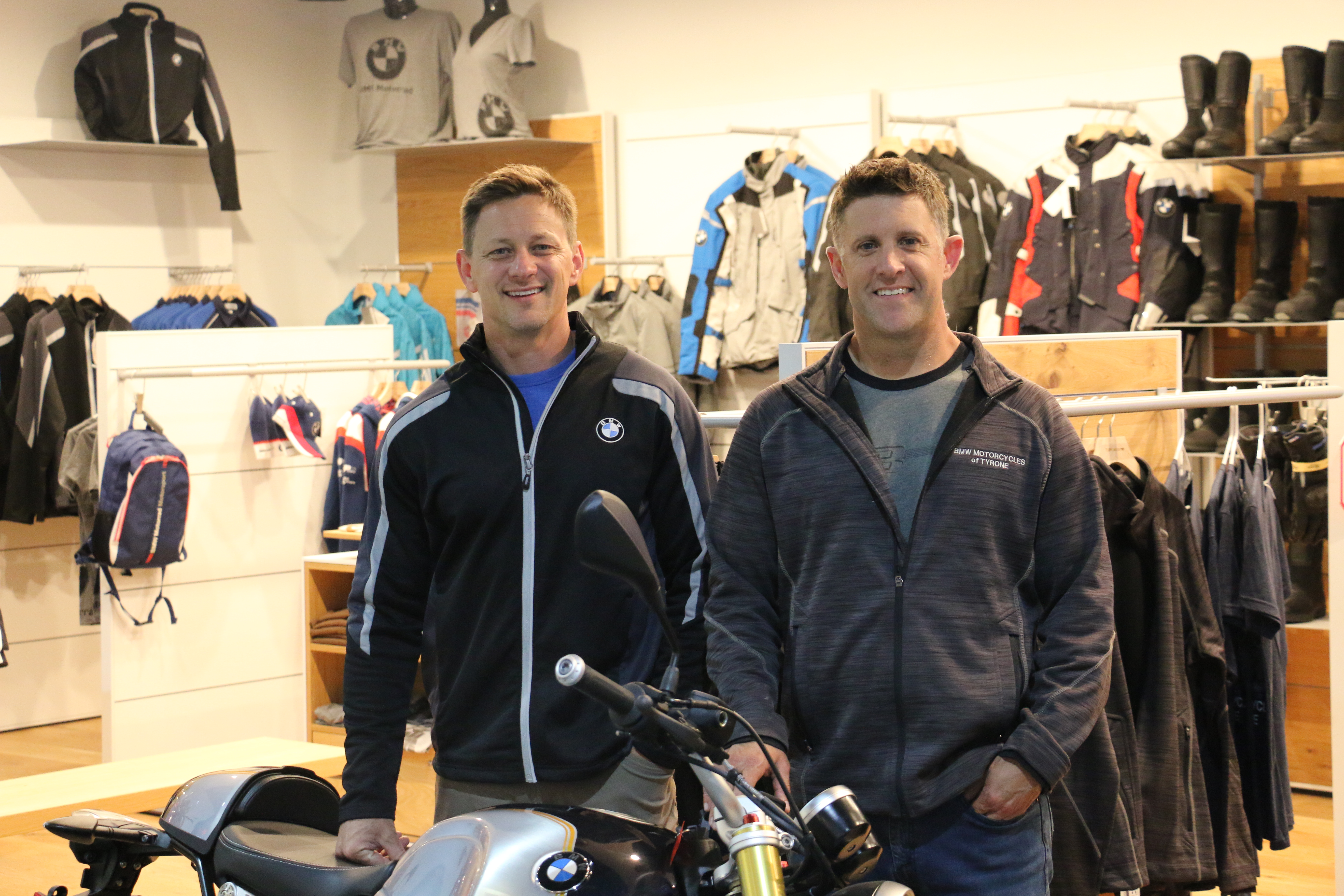 Business partners and best friends -- Dave Myers (left) and General Manager Josh Nolten (right) -- welcome customers to the recently opened BMW Motorcycles of Tyrone.