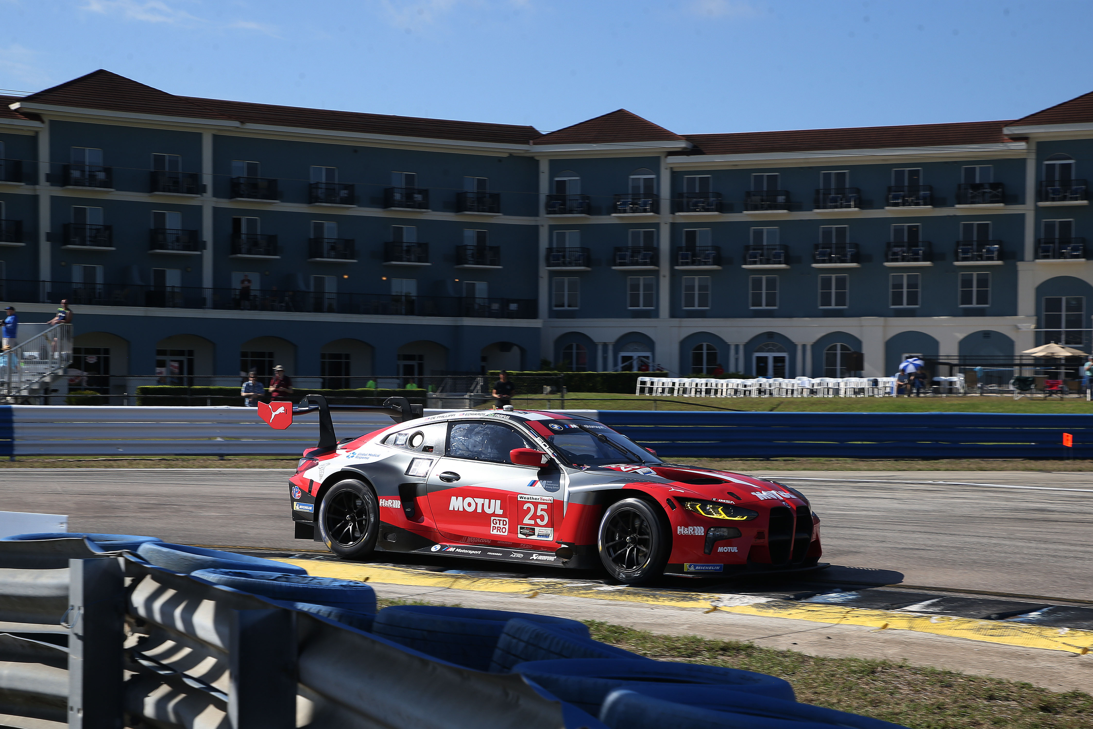Sebring (USA), 16th to 19th March 2022. BMW M Motorsport, IMSA Weather Tech SportsCar Championship, Twelve Hours of Sebring, BMW M Team RLL, #25 MOTUL BMW M4 GT3, Connor De Phillippi (USA), John Edwards (USA), Augusto Farfus (BRA).