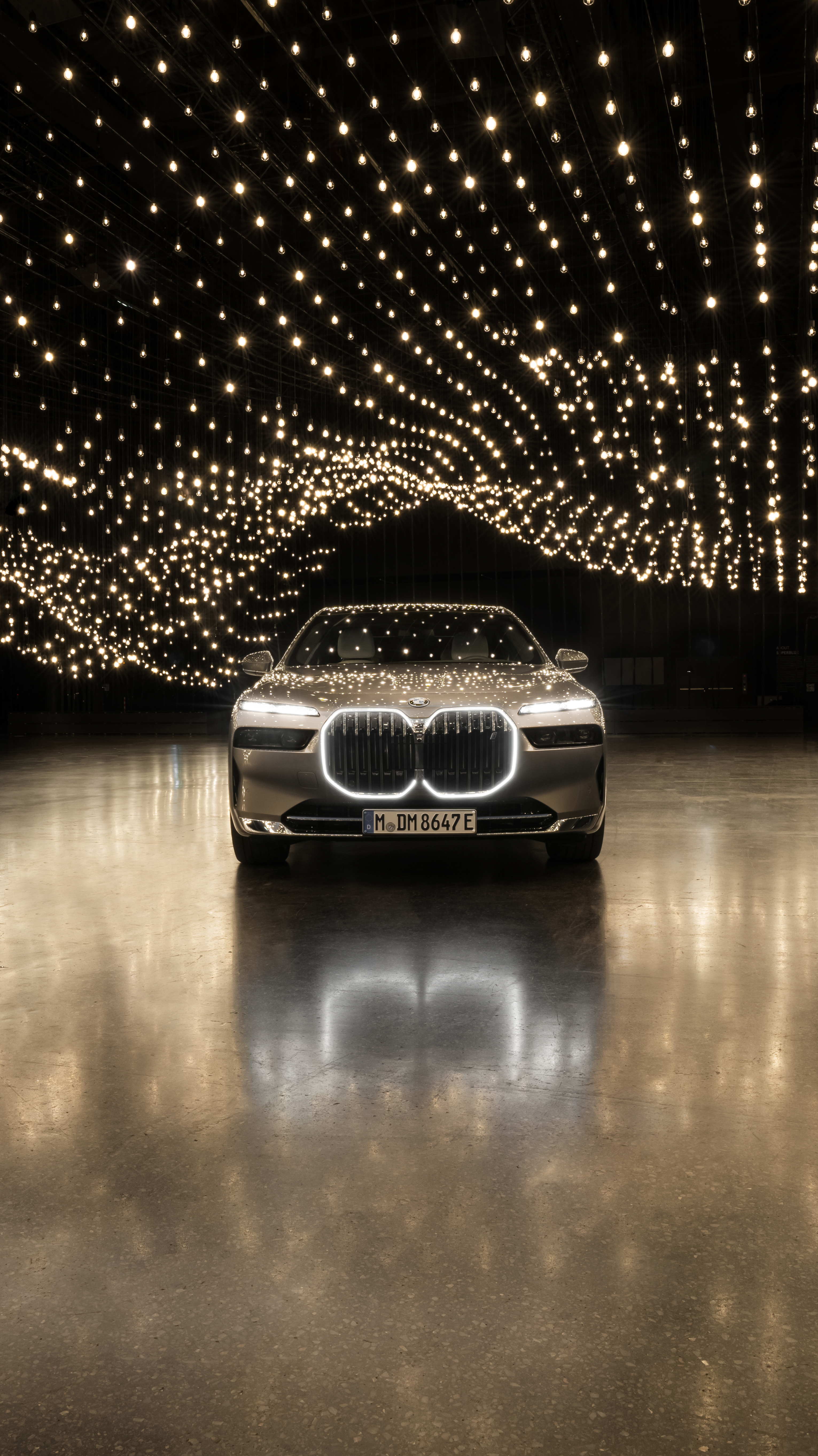 On occasion of Art Basel in Basel 2022, Superblue and BMW i present Rafael Lozano-Hemmer: „Pulse Topology“. Installation view with the new BMW i7. Photo: Enes Kucevic (06/2022)