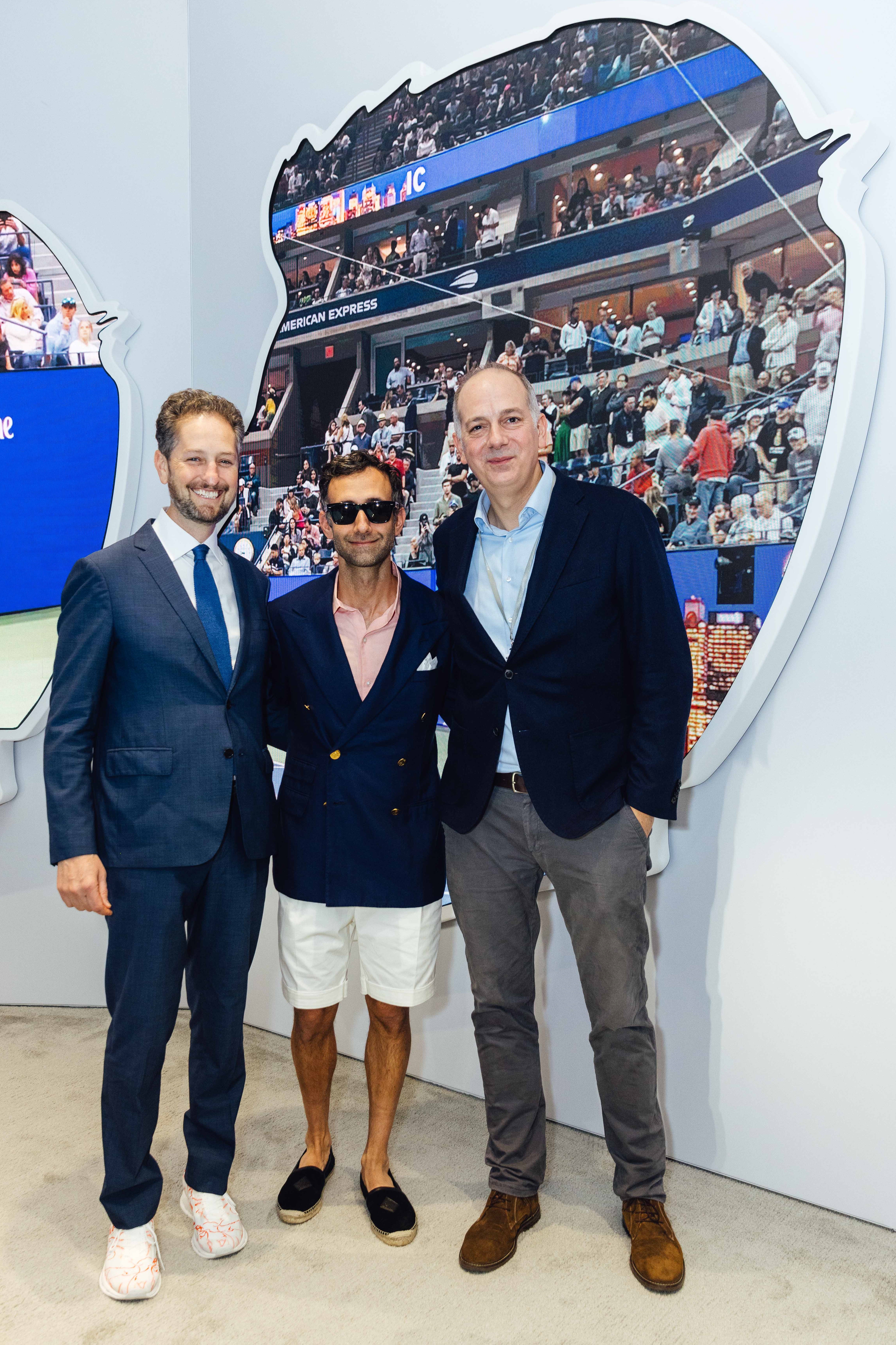Opening Reception: REMEMBR at Art Basel in Miami Beach 2023. f.l.t.r.: Noah Horowitz (CEO Art Basel), Alex Israel, Marcus Casey (Chief Marketing Officer, BMW of North America). (12/2023)